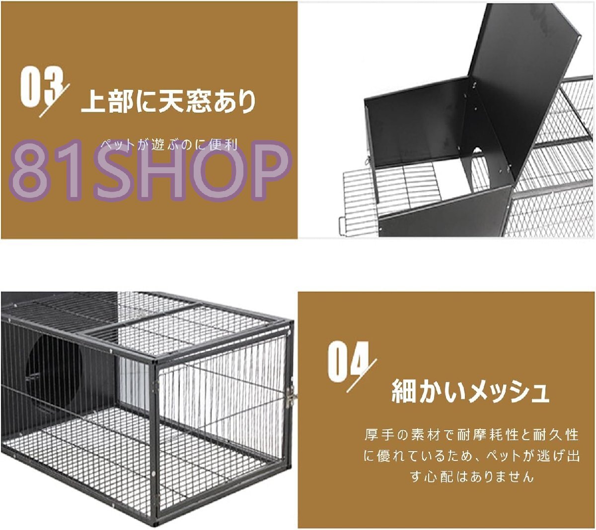 【屋内・屋外両用】頑丈スチール製 うさぎ・犬・猫・ハムスター等小動物用ケージ 脱走防止&天井扉付き 掃除簡単 ペット用品