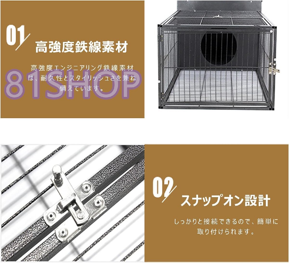 【多目的なペット用品として幅広く活用】うさぎケージとしてだけでなく、犬ケージ、猫ケージ、鳥用の鶏小屋、ハムスターや豚鼠用のケージなど、多くの小動物に使用可能な多目的なペット用品です。ペットの育成や輸送にも役立ちます。
