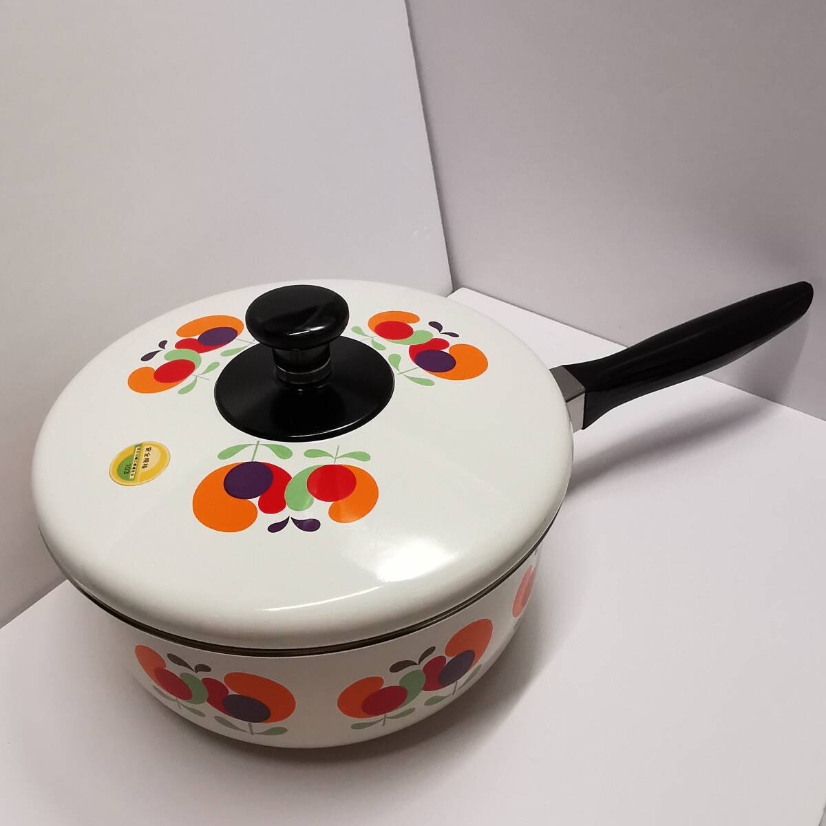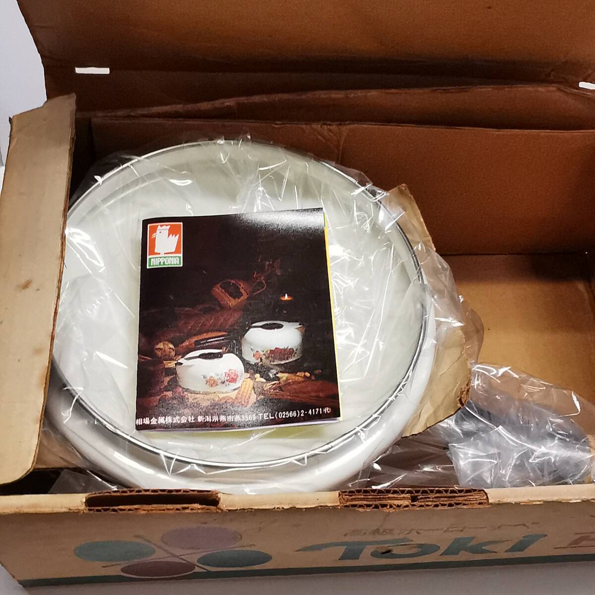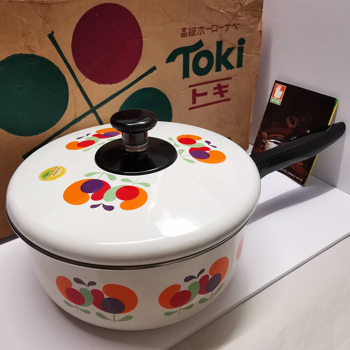 未使用◆TOKI トキ 高級 ホーロー 片手鍋 昭和レトロ 約 190mm◆昭和レトロ レトロポップ 花柄 当時物 箱付き