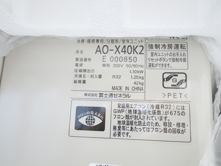 【未使用品】【室外機のみ】富士通製/ルームエアコン/14畳用/AO-X40K2(7091275)