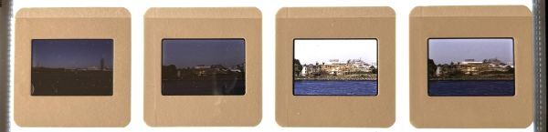 川俣正が、1992年にニューヨークのルーズベルト島で実現したプロジェックと作品を撮影したスライド写真、4枚セットです。