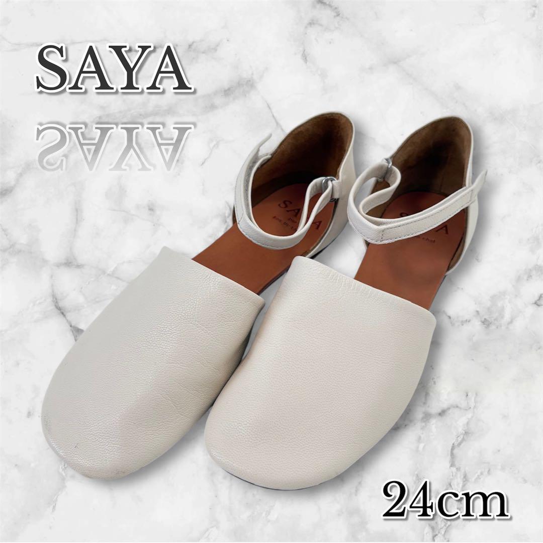 美品 SAYA サヤ ストラップフラットシューズ パンプス 24cm 革 日本製  4578 00427012