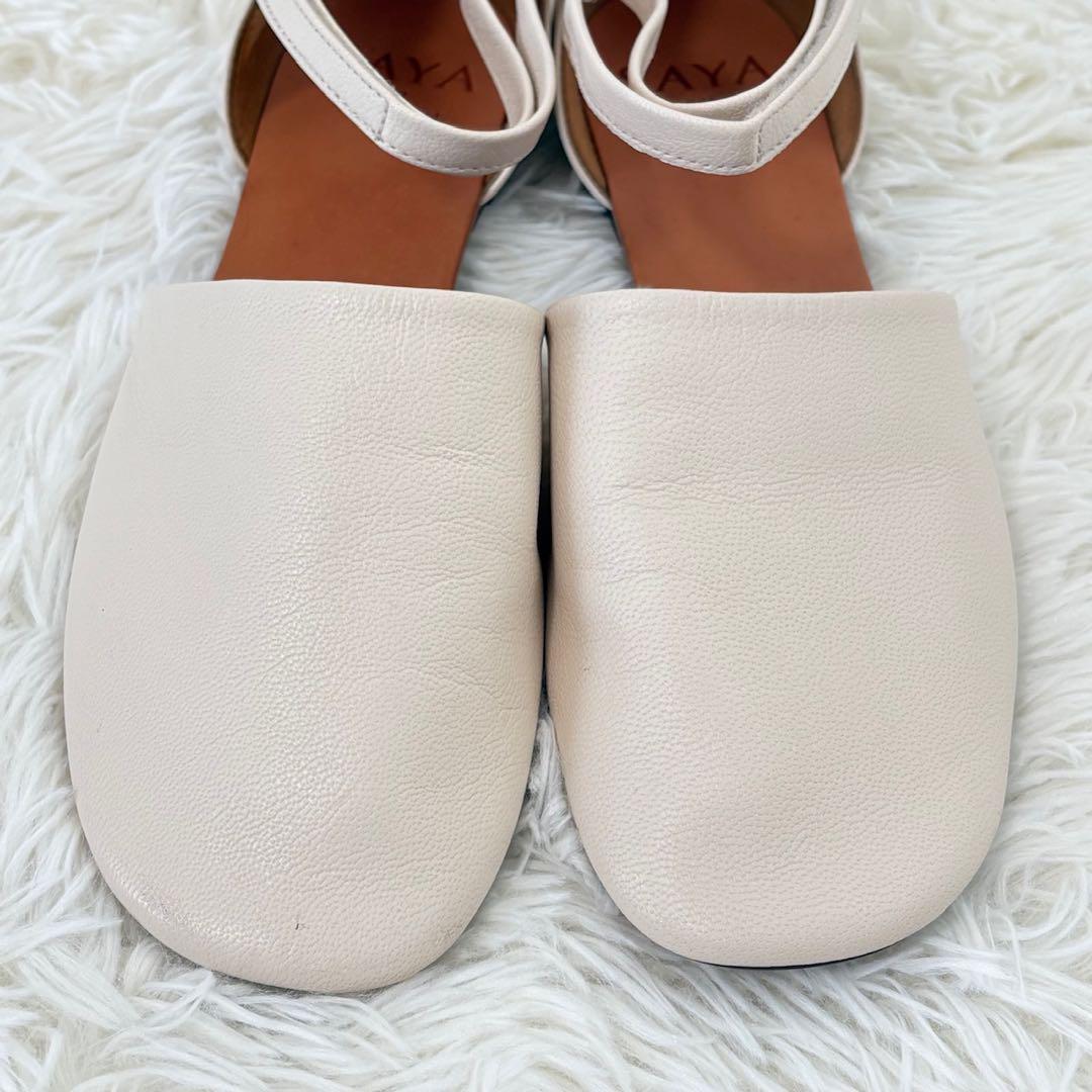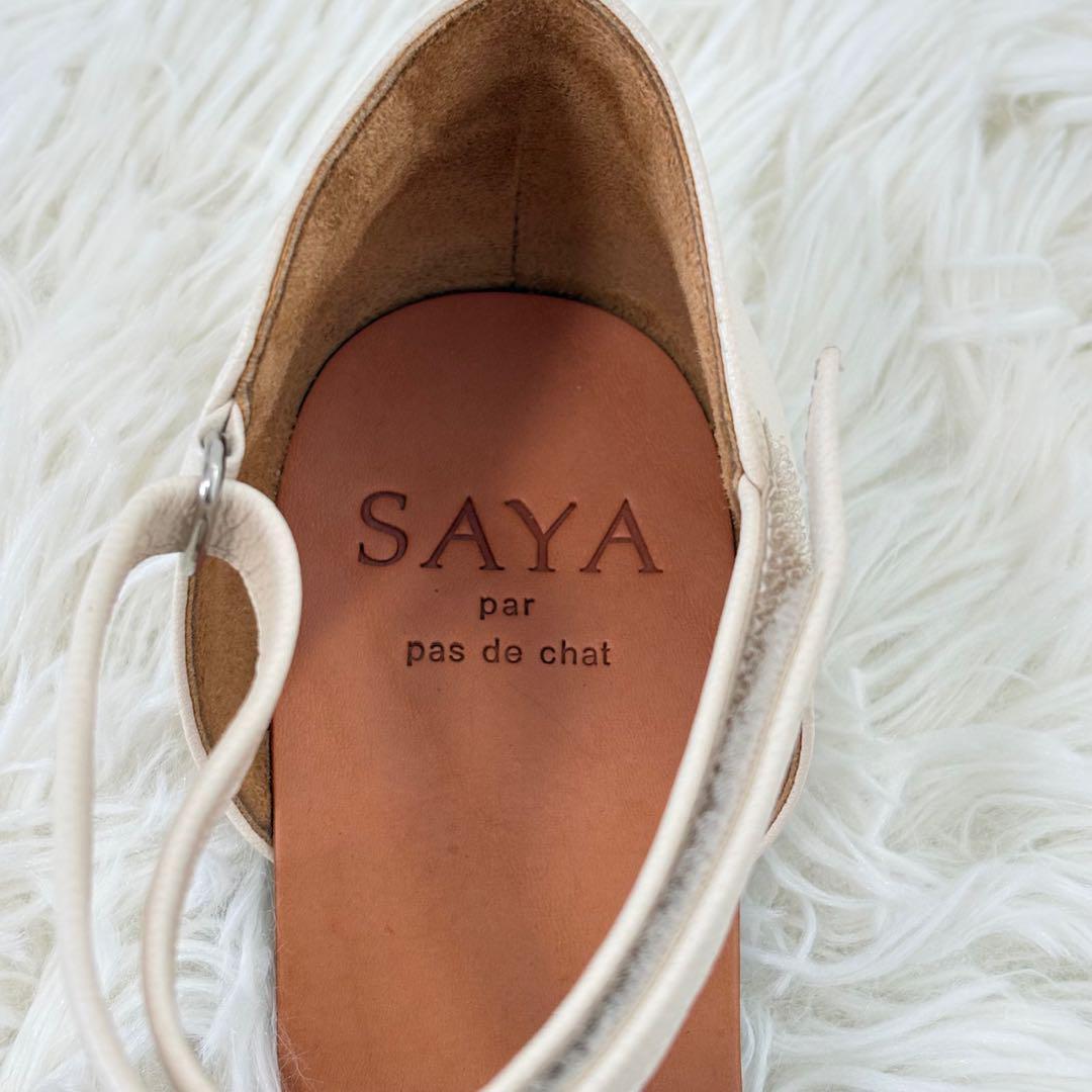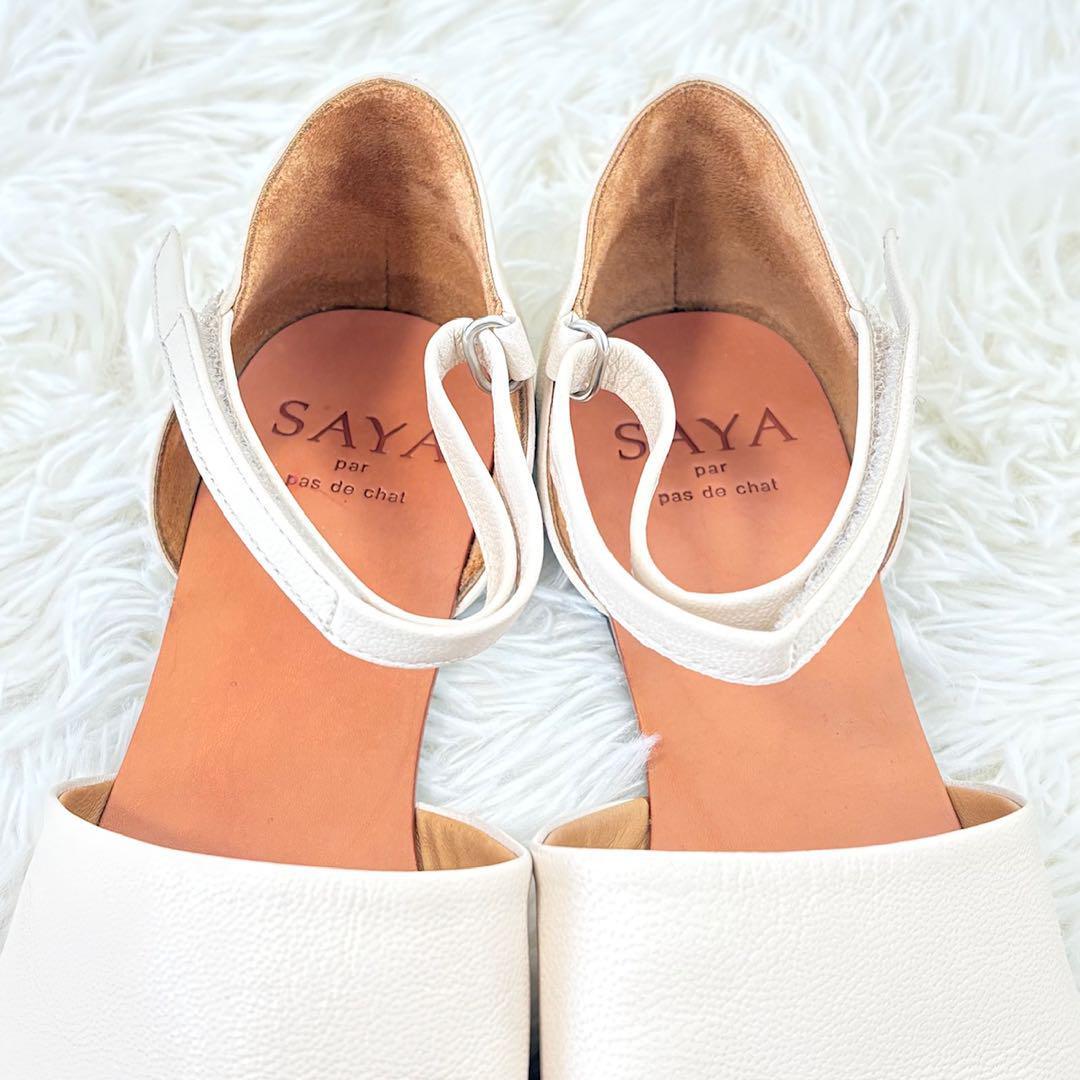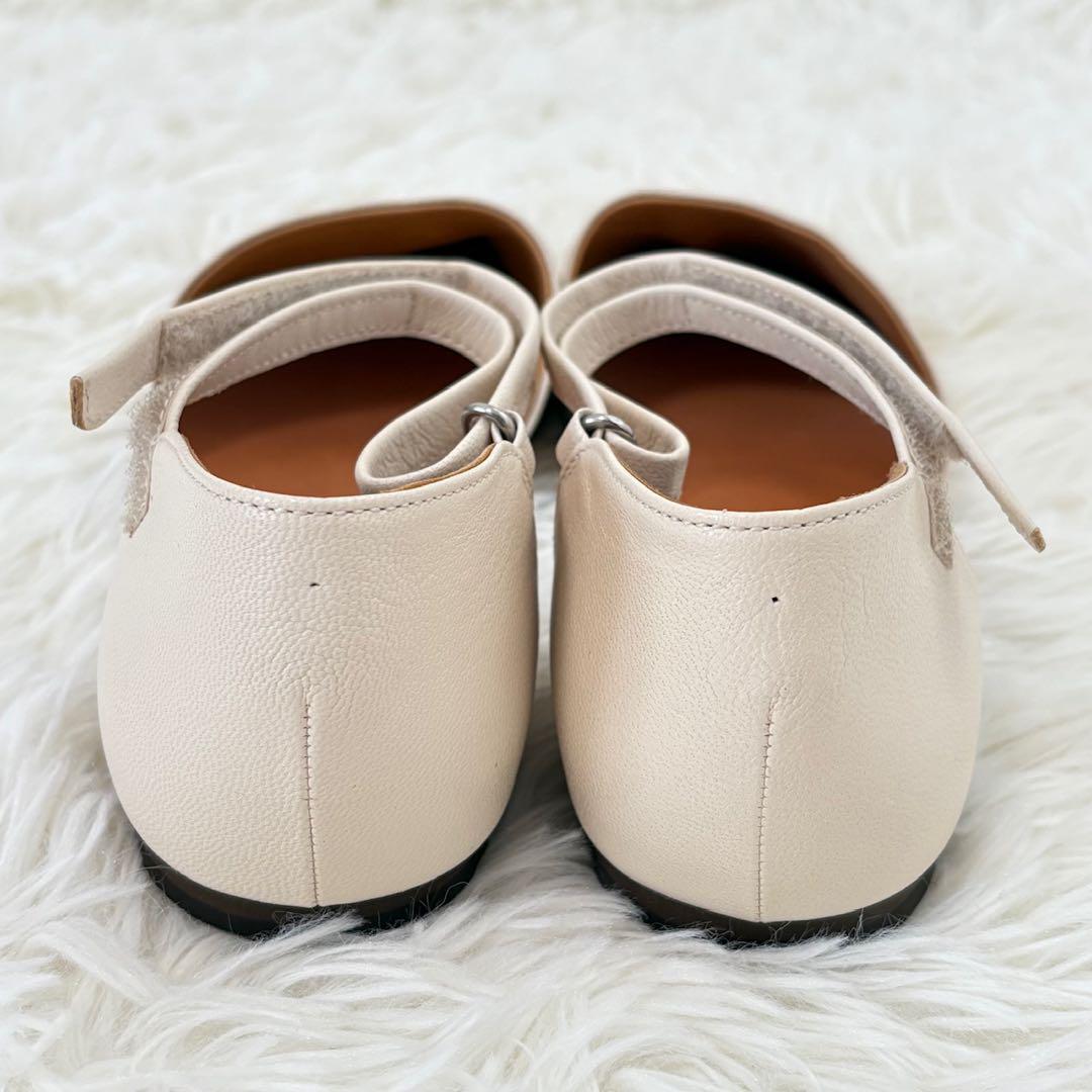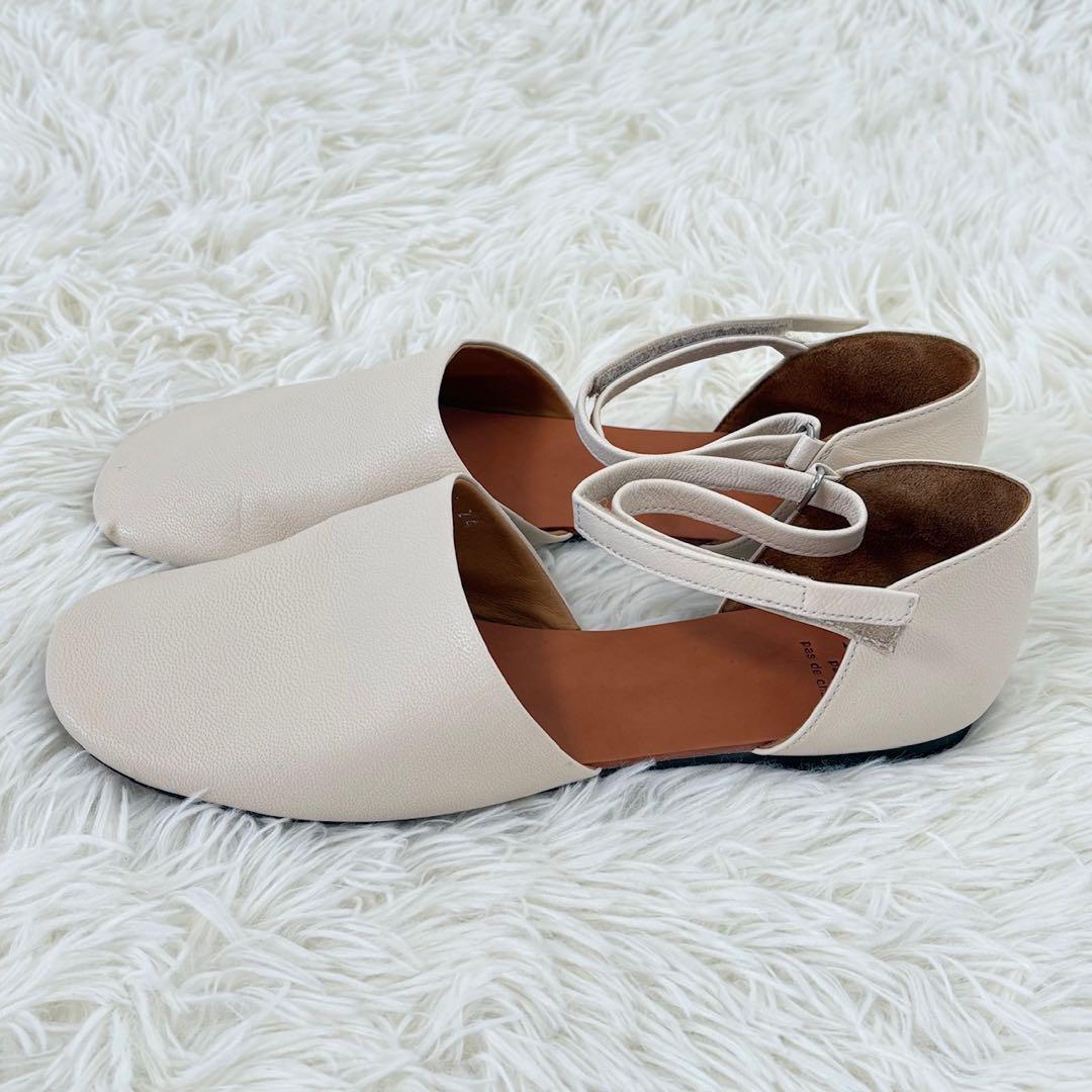 美品 SAYA サヤ ストラップフラットシューズ パンプス 24cm 革 日本製 ベージュ系 白系