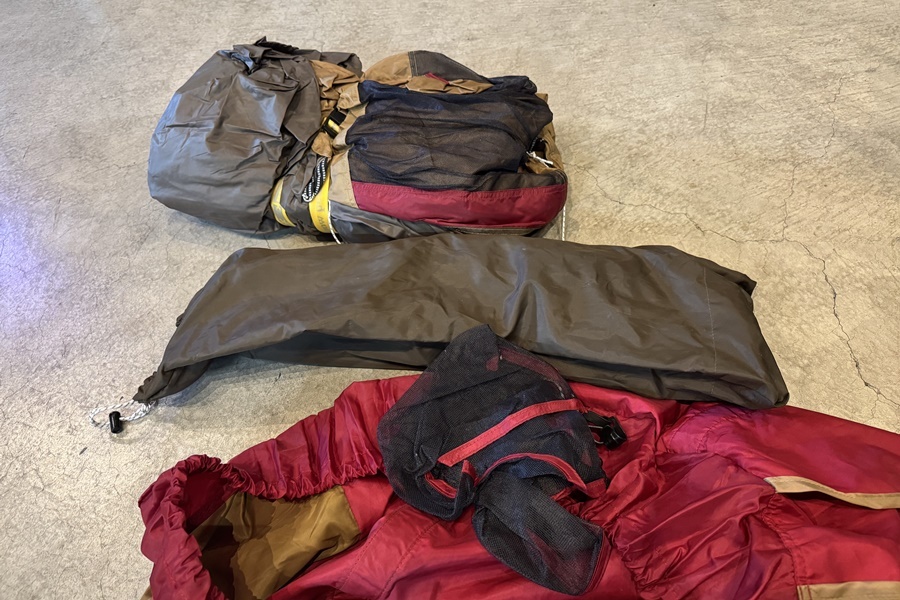 傷、汚れ、劣化等が見受けられます。広げての詳細未確認、設営しての状態未確認のお品物になります。