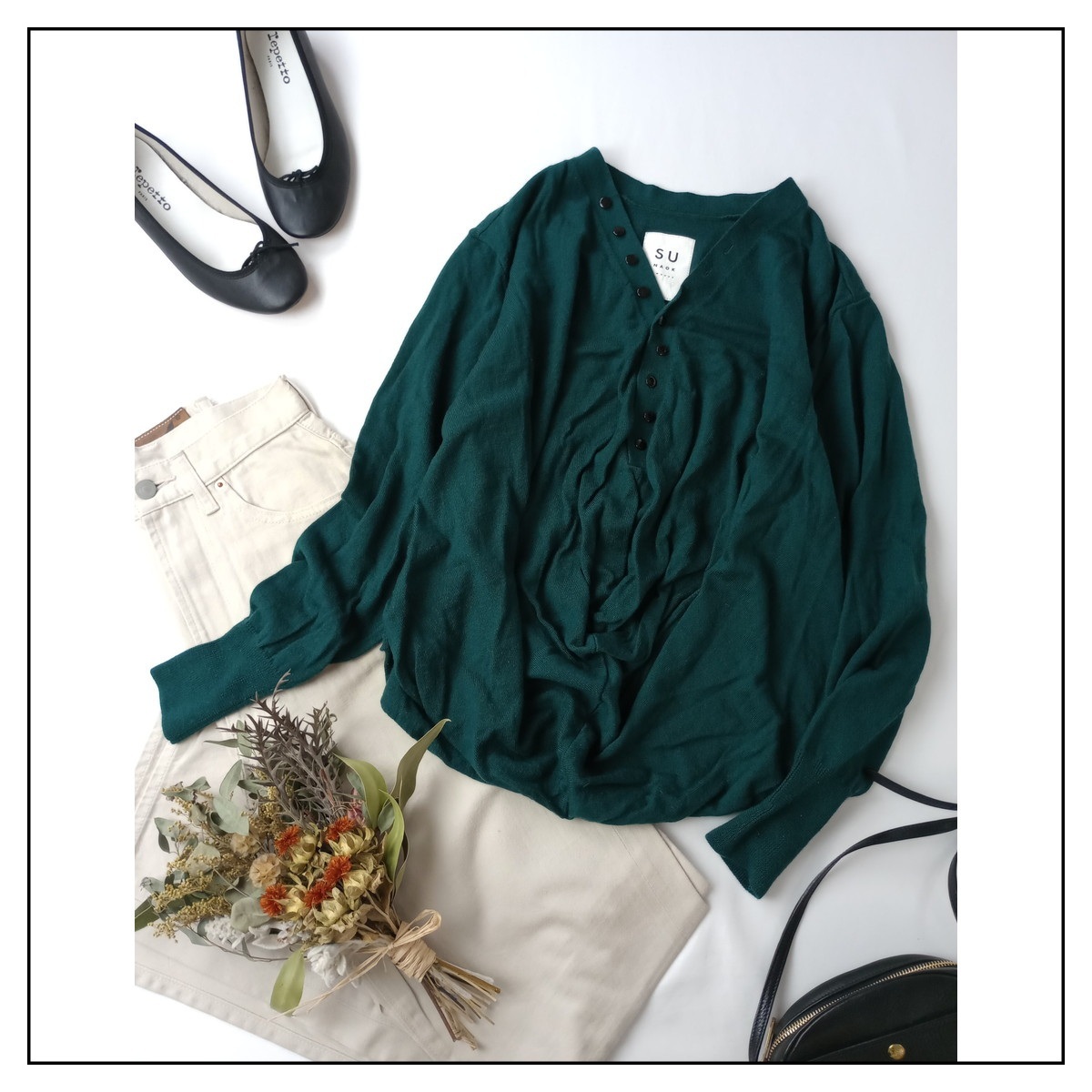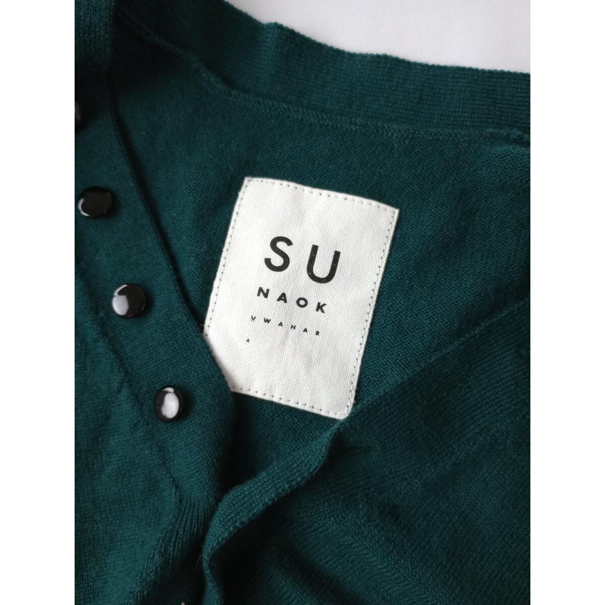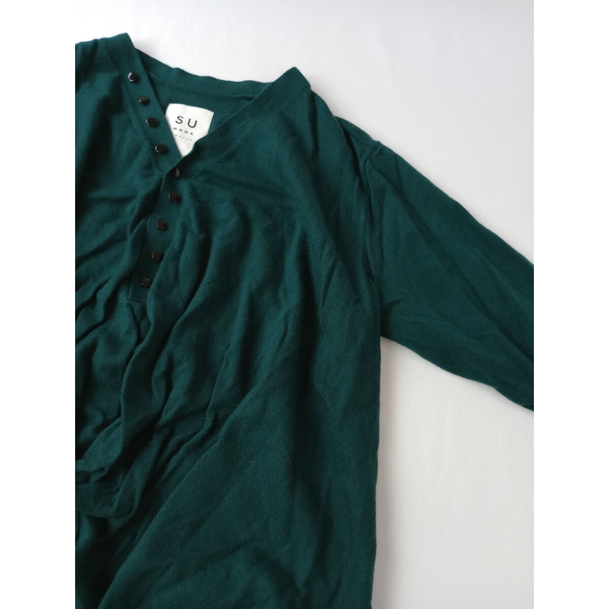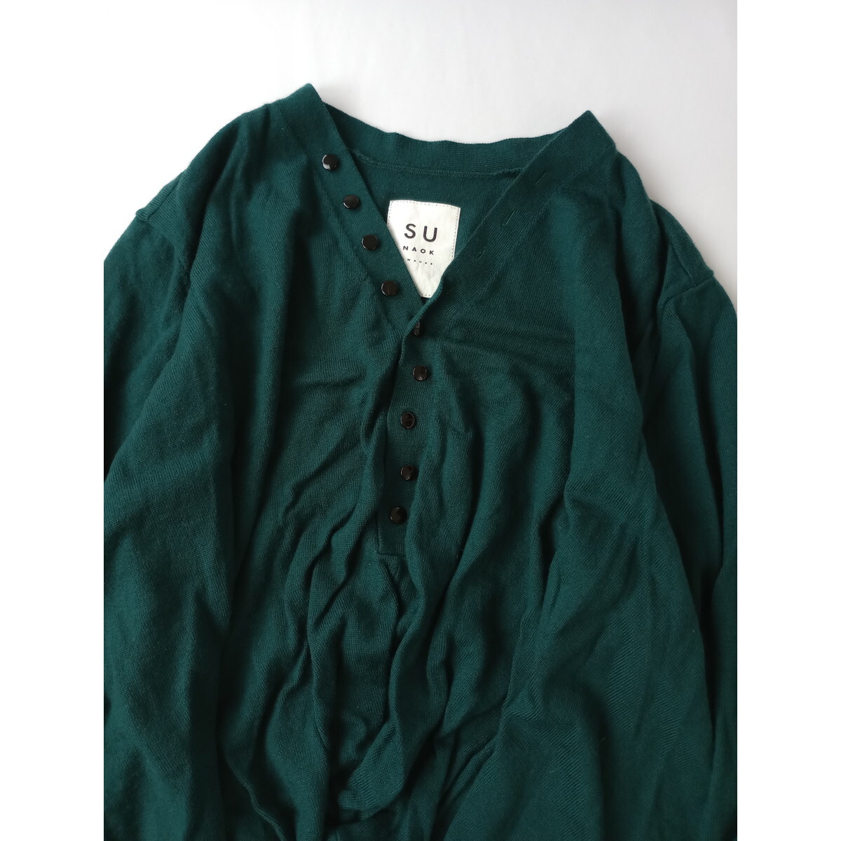 SUNAO KUWAHARA「ていねいな人のために…」ウール 毛 100% ドレープ ニット プルオーバー カーディガン 長袖 2 グリーン(18M+5278)●