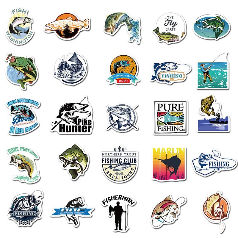 【ステッカー】全50枚・バス釣り フィッシング ブラックバス ルアー フライフィッシング クーラーボックス ダイワ シマノ(送料無料!)