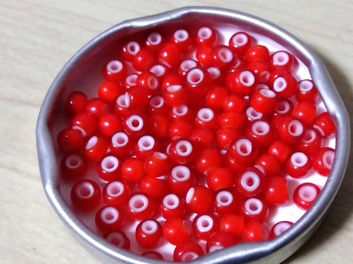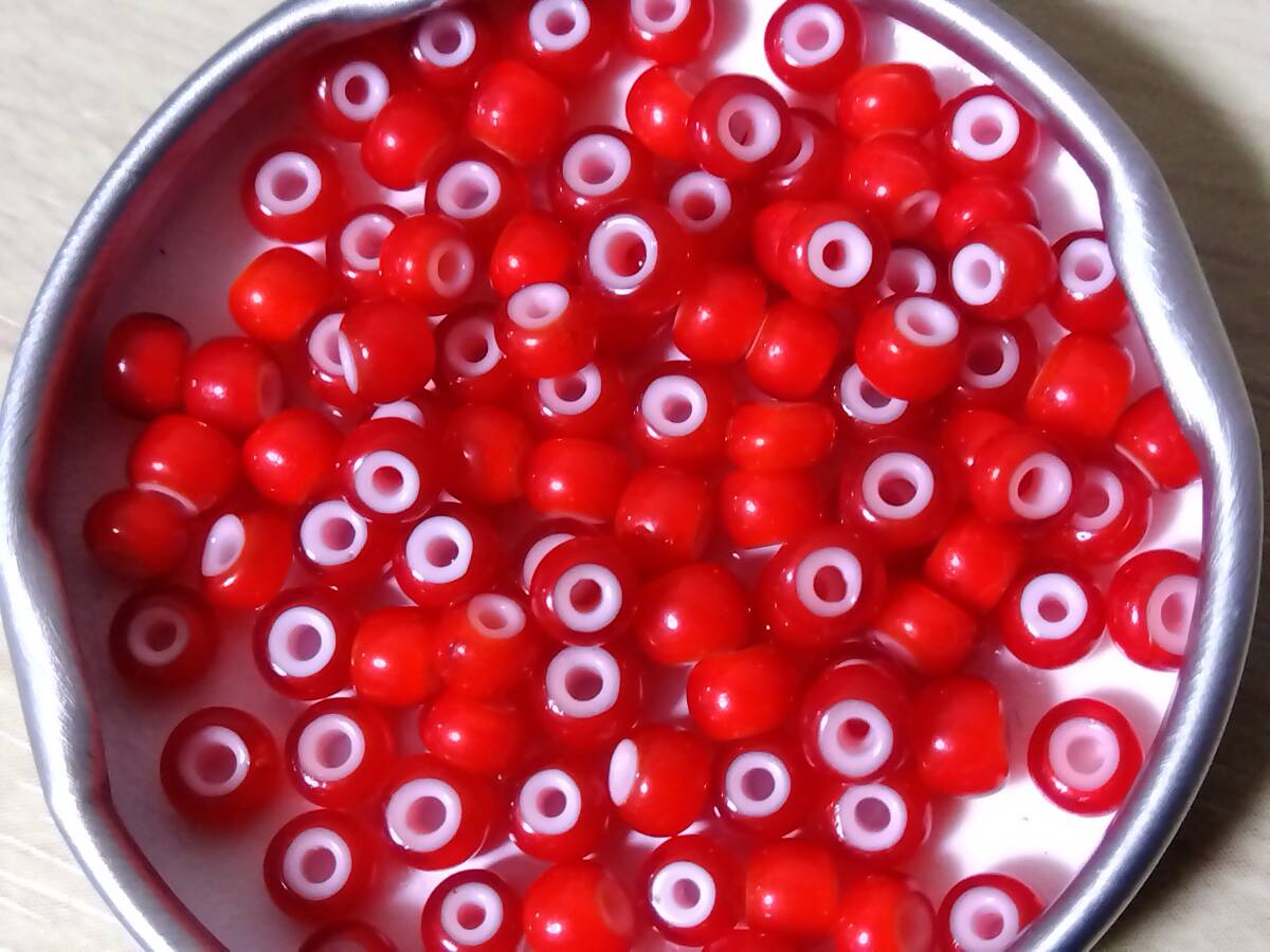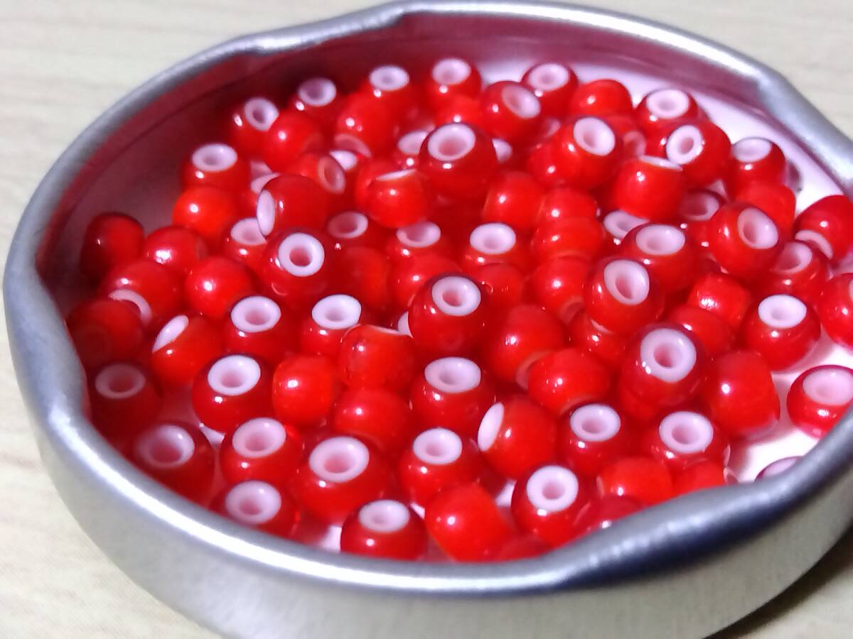 即決\300 ホワイトハーツビーズ  100個セット レッド