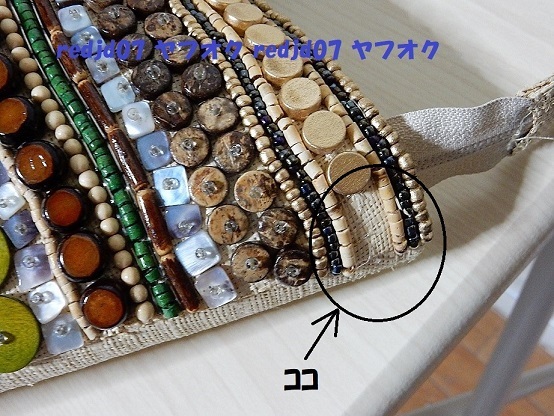 本体:ラフィア素材、ビーズ、カラーウッドパーツ、シェル他