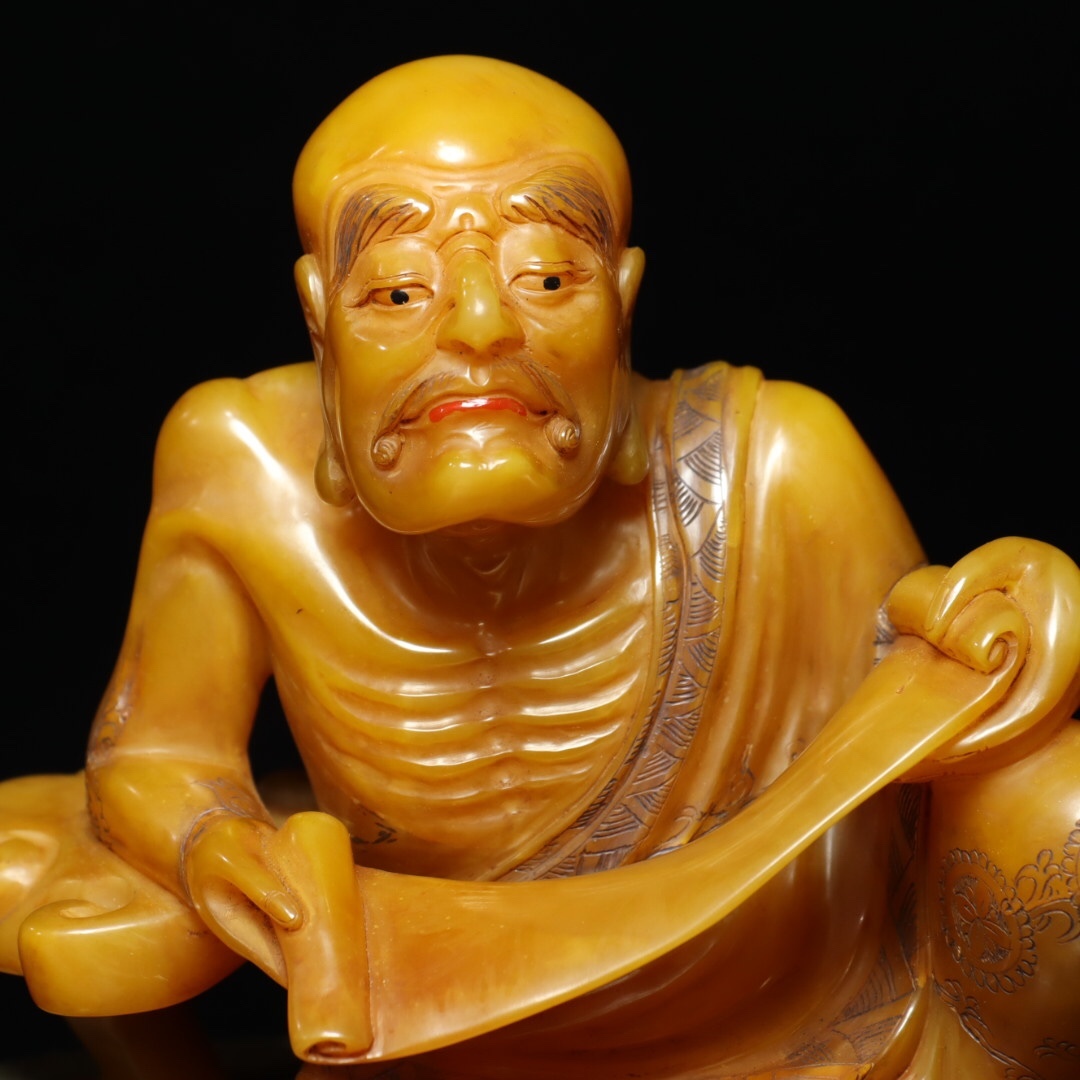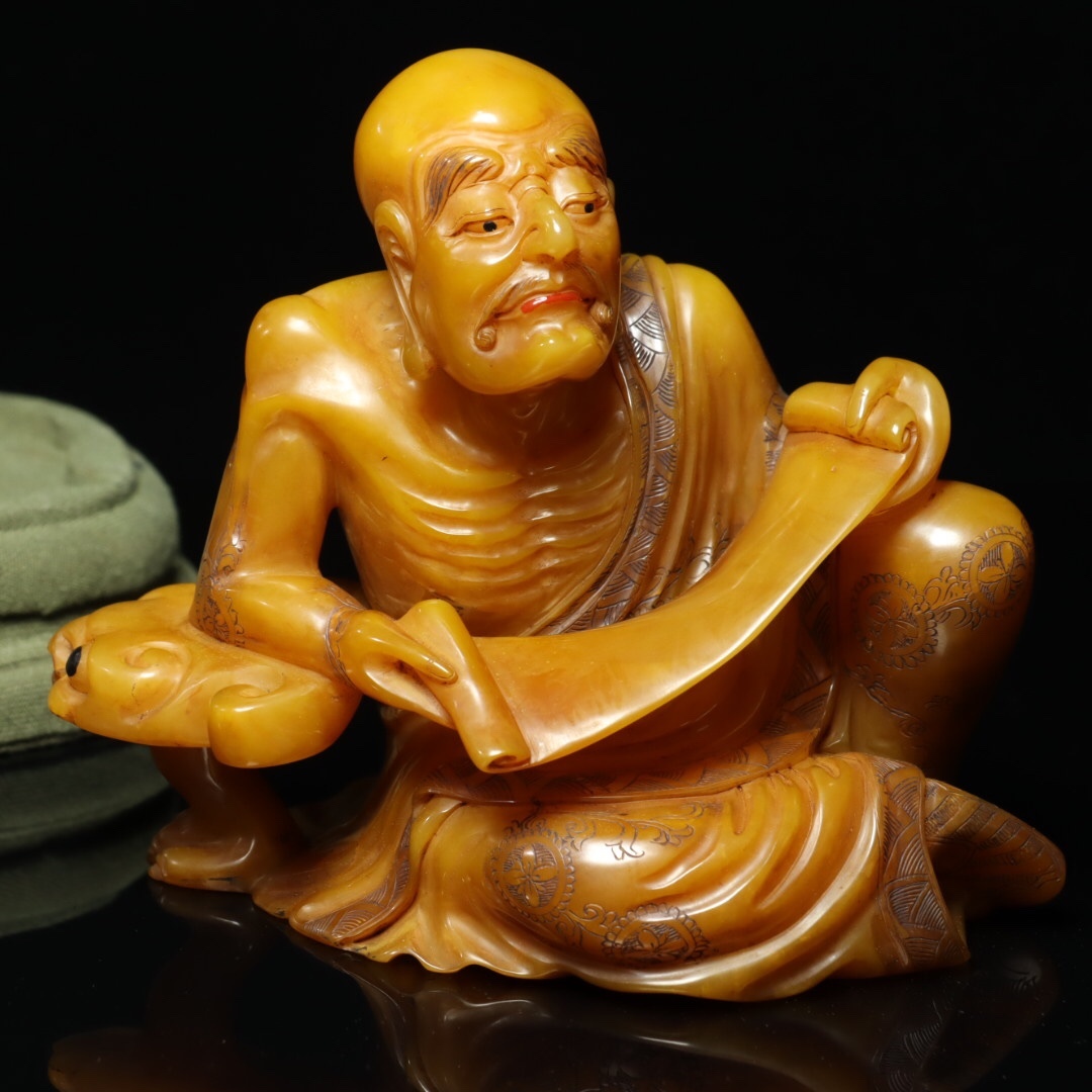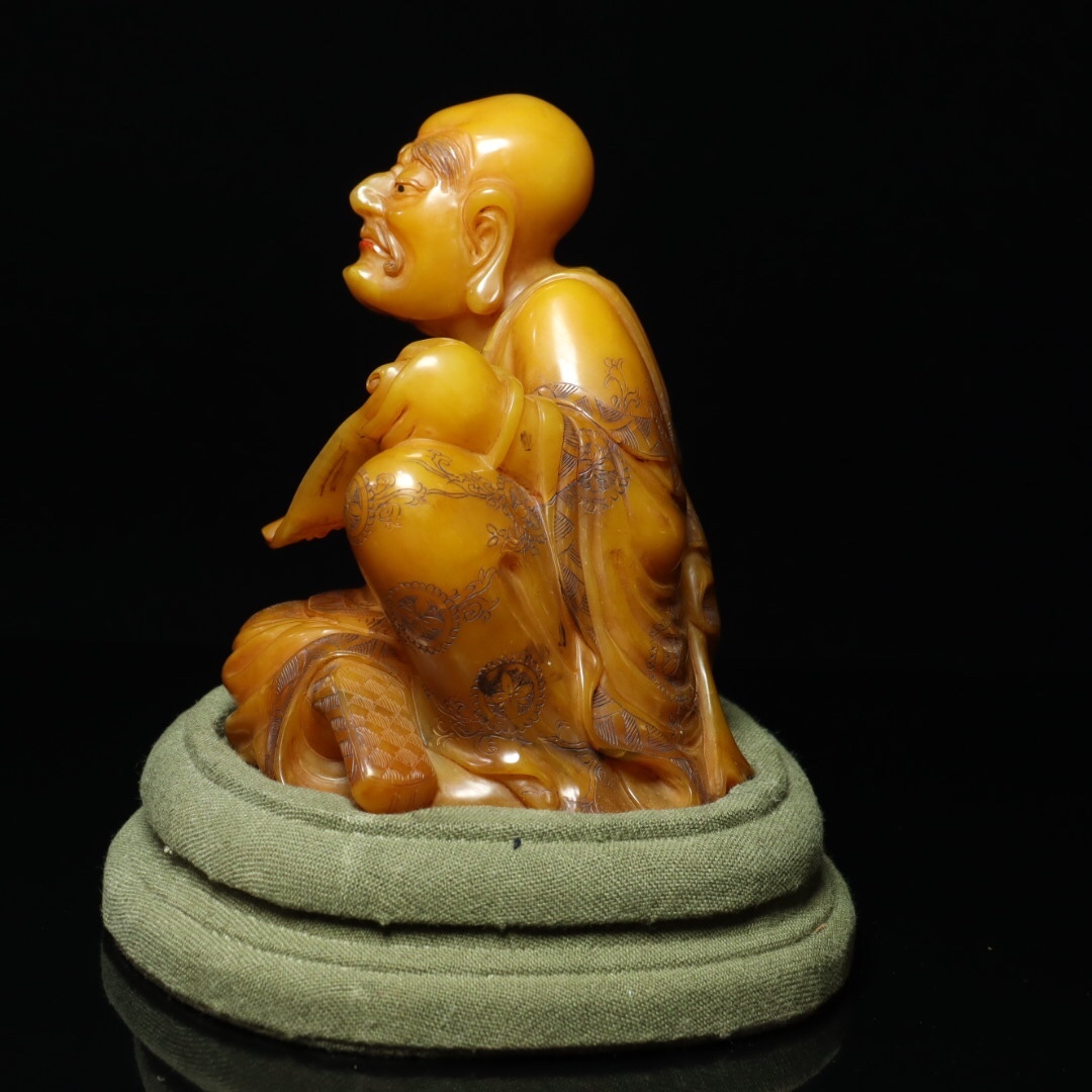 *珍品旧蔵* 【清乾隆篆刻家 尚均 本名:周彬】寿山石 田黄石 彫刻 人物 置物【羅漢】 天然石 手彫 篆刻 極細工 中国古玩 骨董品 古美味 H49