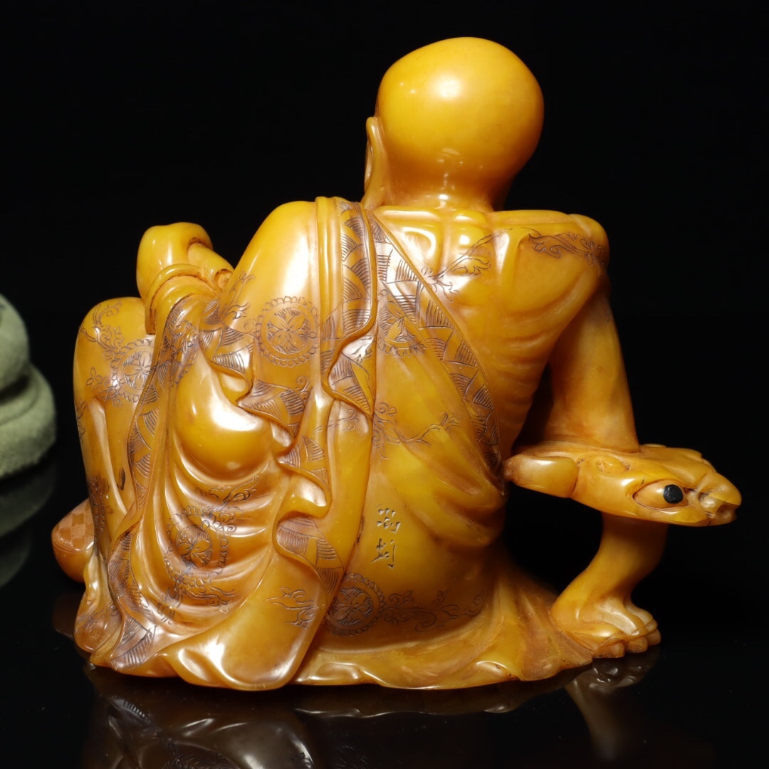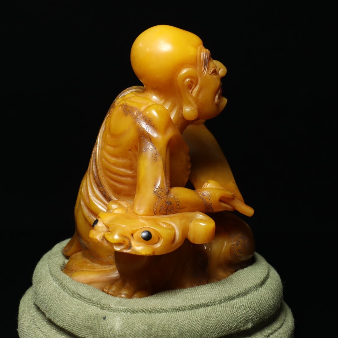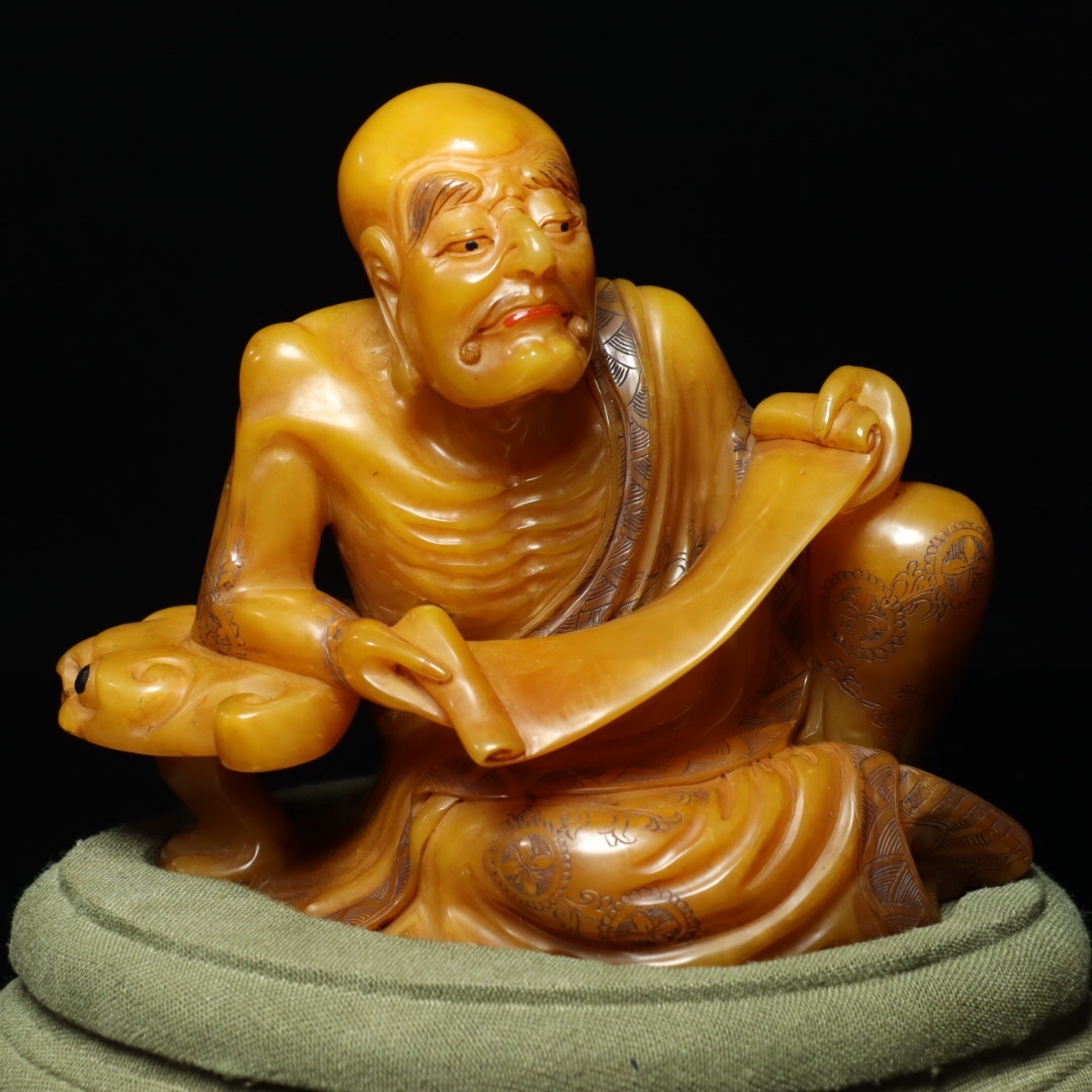 *珍品旧蔵* 【清乾隆篆刻家 尚均 本名:周彬】寿山石 田黄石 彫刻 人物 置物【羅漢】 天然石 手彫 篆刻 極細工 中国古玩 骨董品 古美味 H49