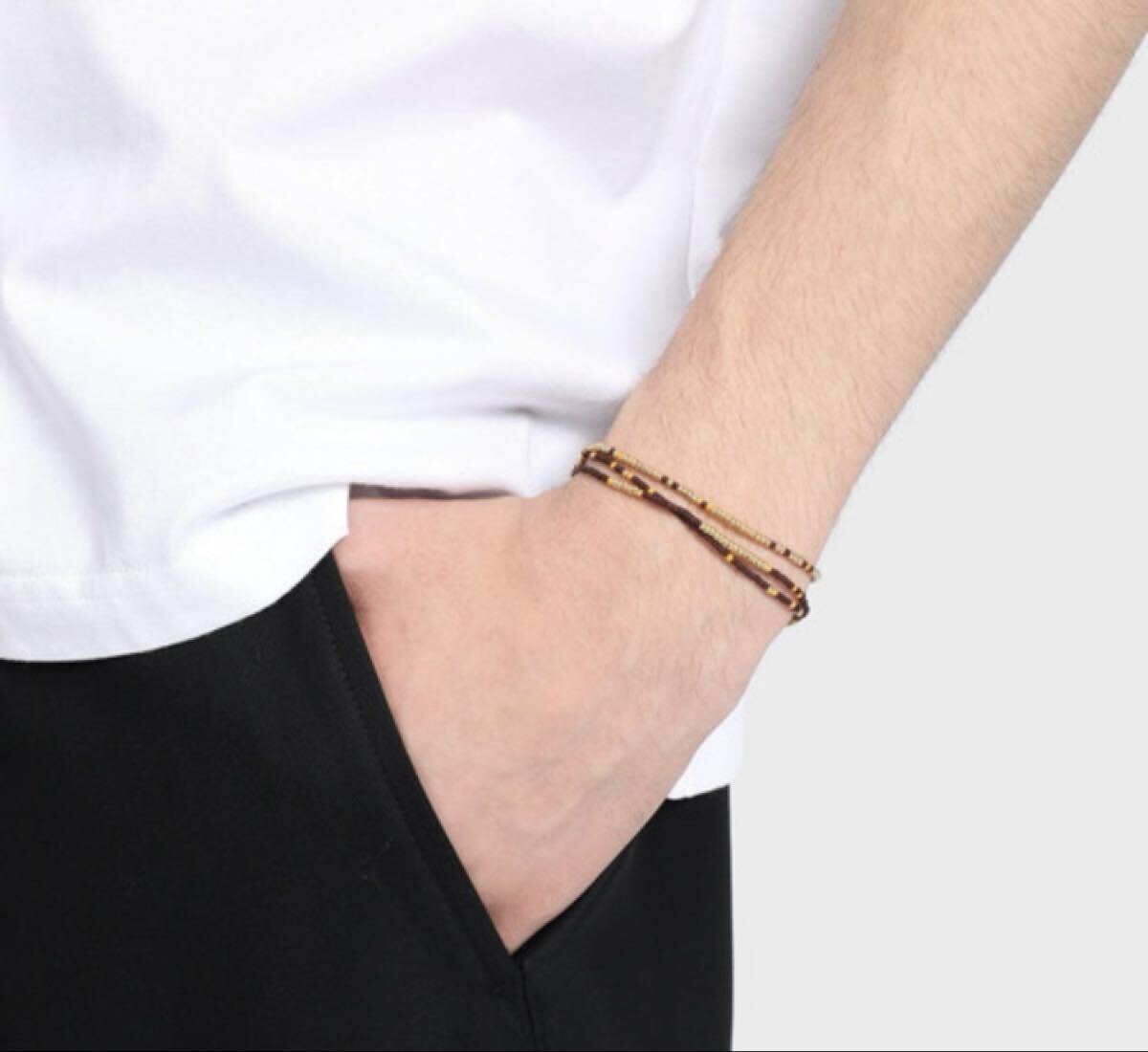 ●新品●送料込 価13200円 ポールスミス 真鍮ガラスビーズ2WAYブレスレット 黒×ゴールドB ネックレス兼用 全長55cm Paul Smith