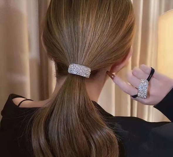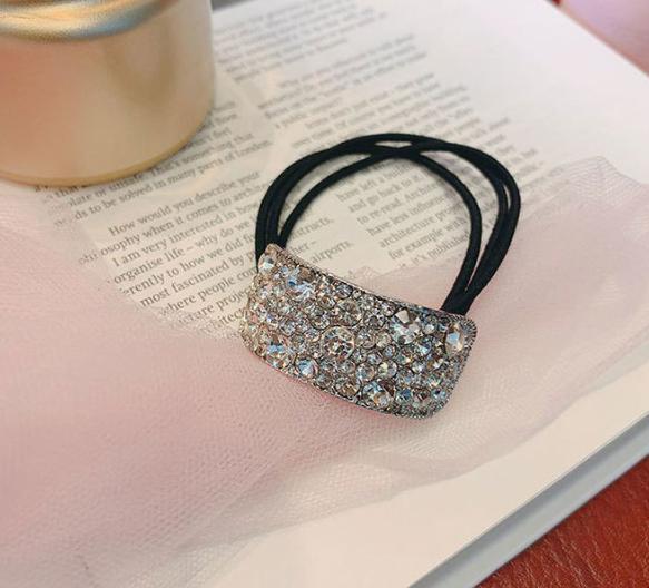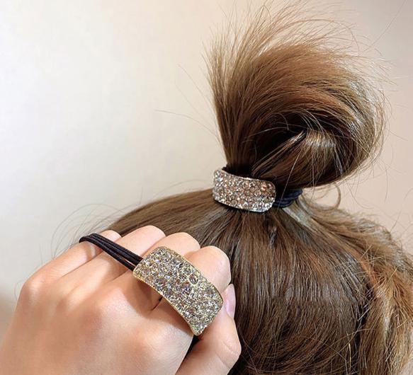 ラグジュアリーな輝きを放つビジュー付きヘアゴム。シンプルなまとめ髪も一瞬で華やかに格上げし、上品で大人っぽい印象を演出します。普段使いから特別なシーンまで活躍する万能アイテムです。