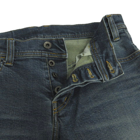 【仕様】スリムジーンズ 0240050118 デニム ボタンフライ ユーズド加工 ストレッチ 日本製 前後にポケットあり