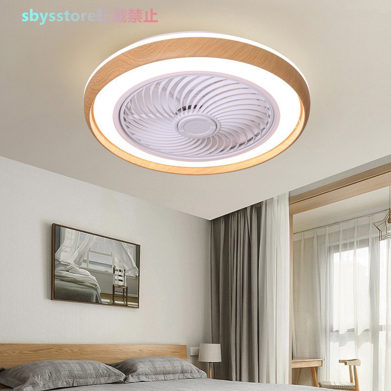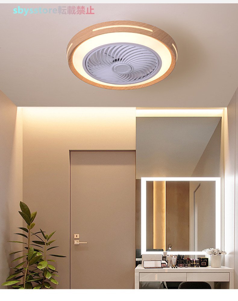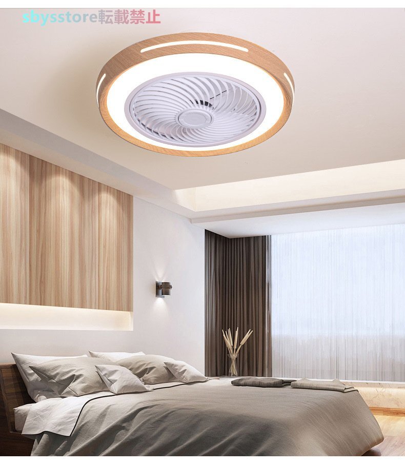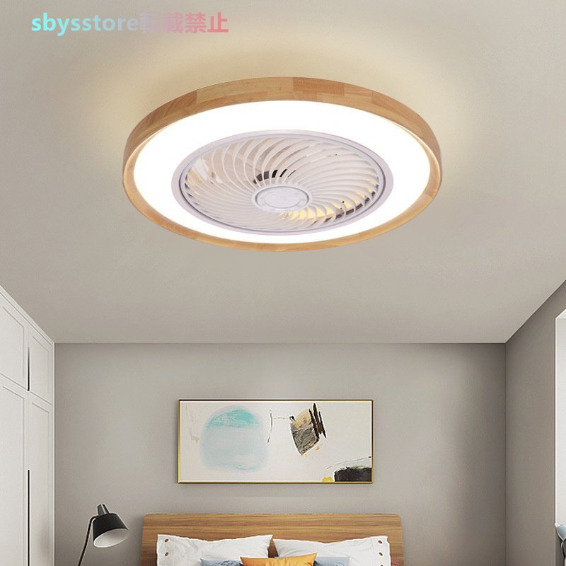 超薄天然木シーリングファンライト 寝室・ダイニング用 北欧風家庭用オールウッドファンシャンデリア