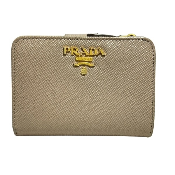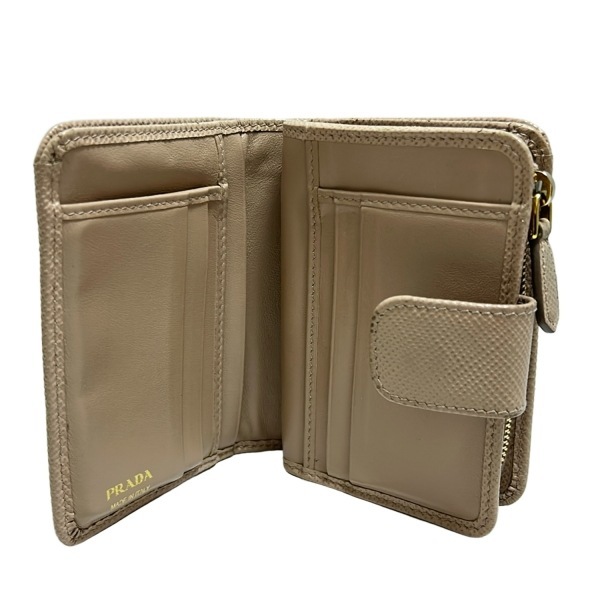 プラダ PRADA 2つ折り財布/ミニ/コンパクト - レザー ベージュ 財布