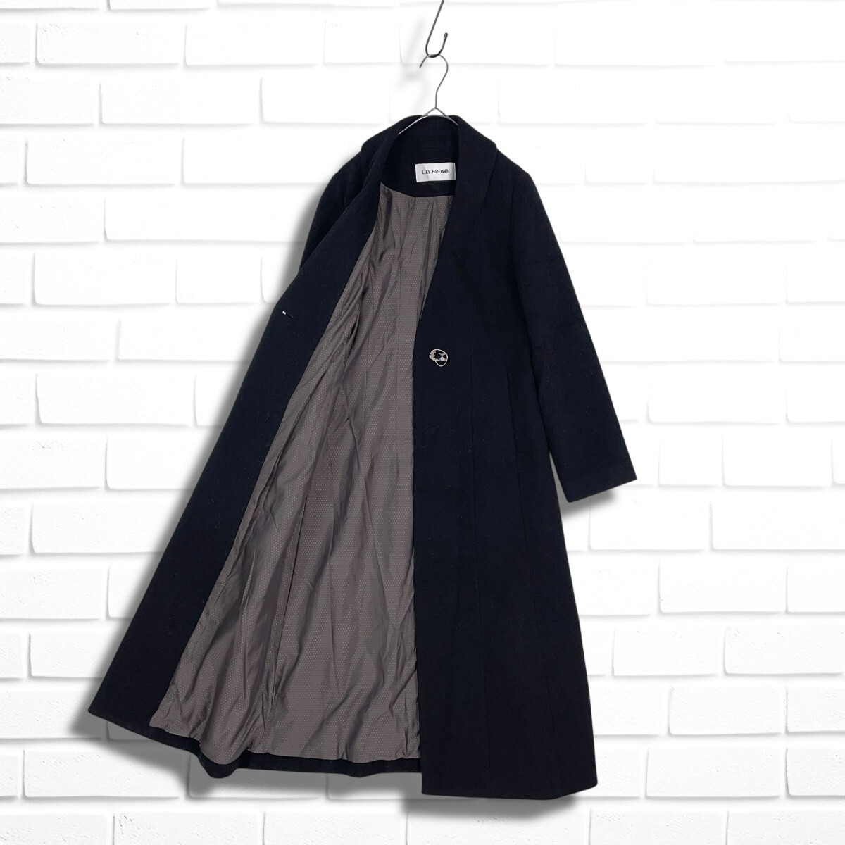 ◆良品 22AW◆ LILY BROWN リリーブラウン ウール ロング チェスター コート 黒 ブラック レディース 0 ◆送料無料◆ 0995I◇