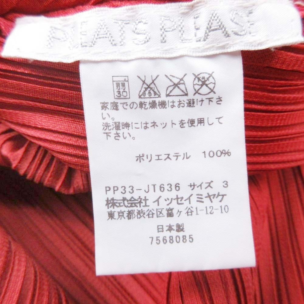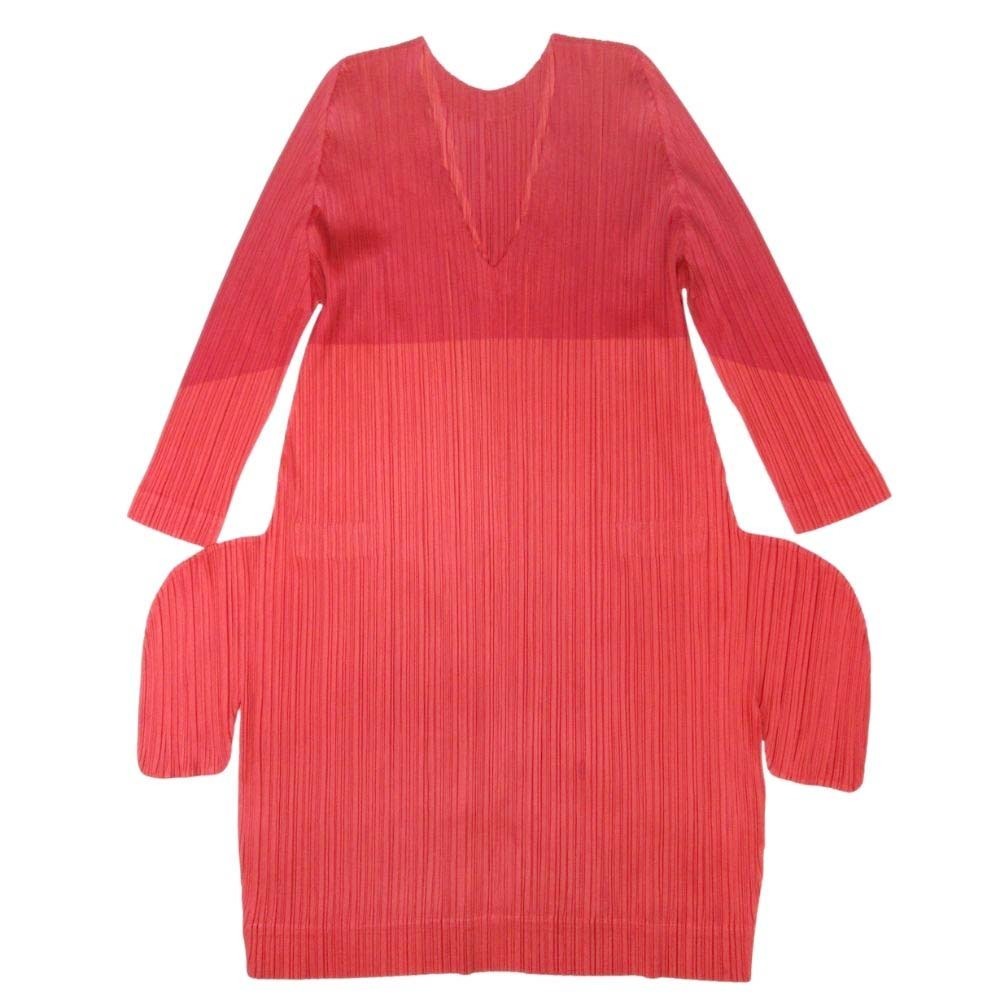 良品 03aw PLEATS PLEASE プリーツプリーズ イッセイミヤケ 変形 プリーツ チュニック ワンピース Vネック 3 赤 レッド