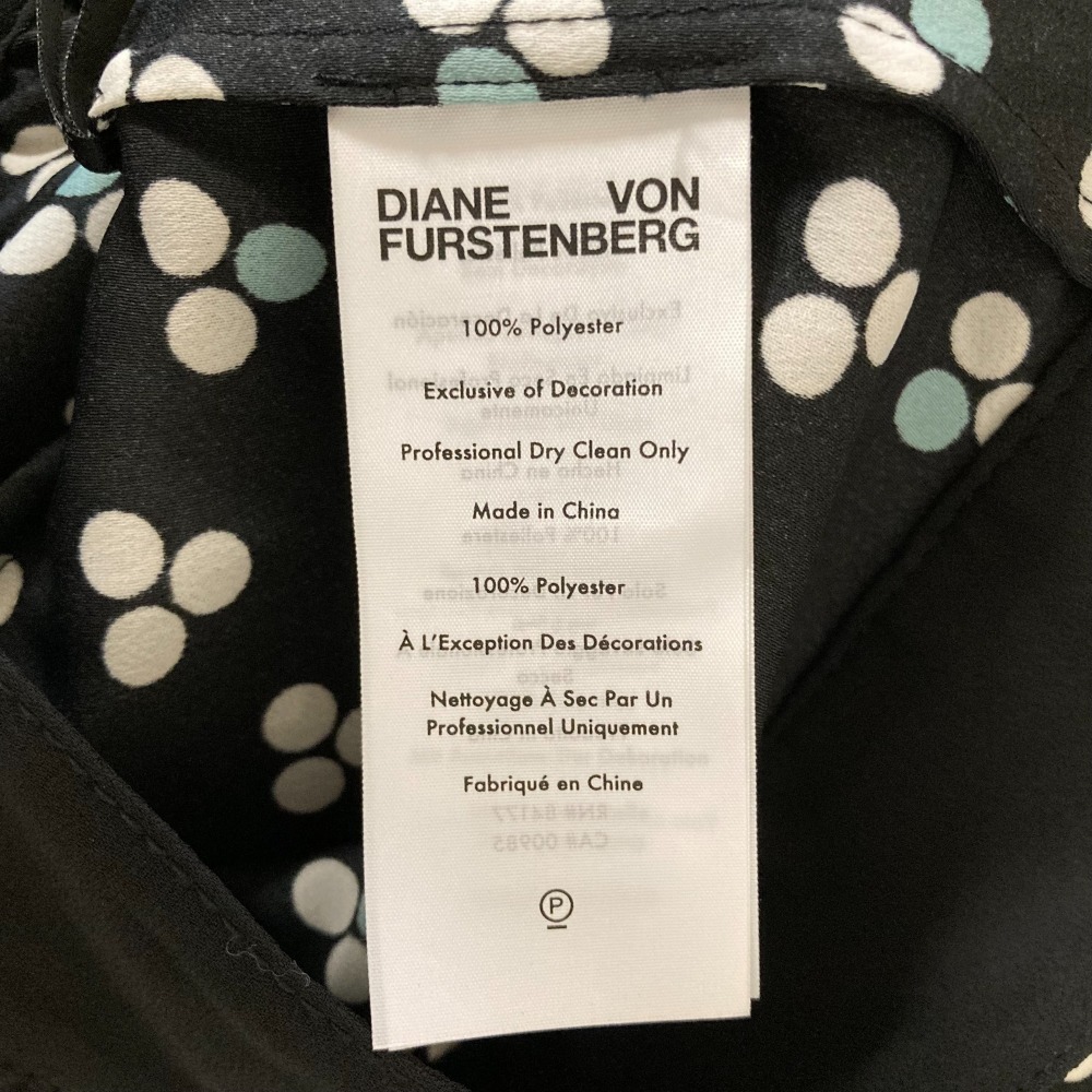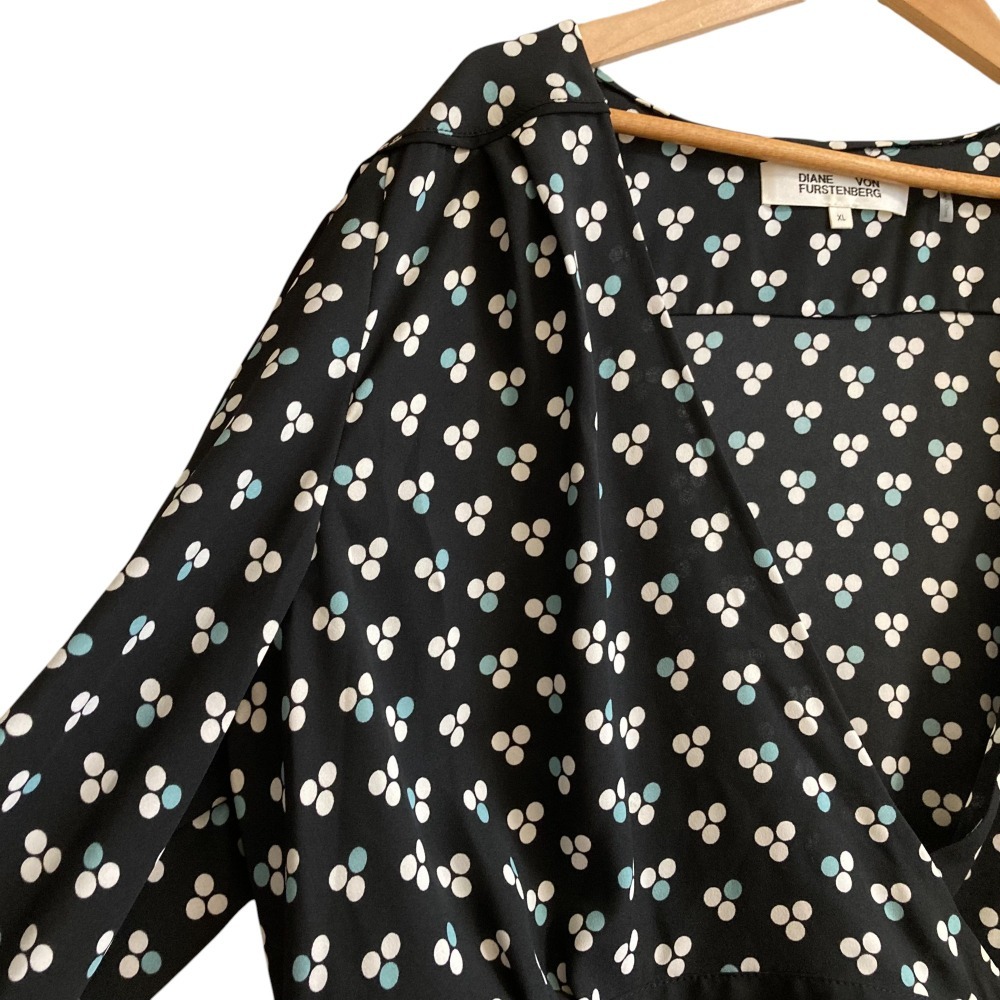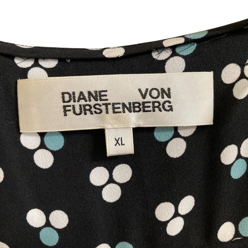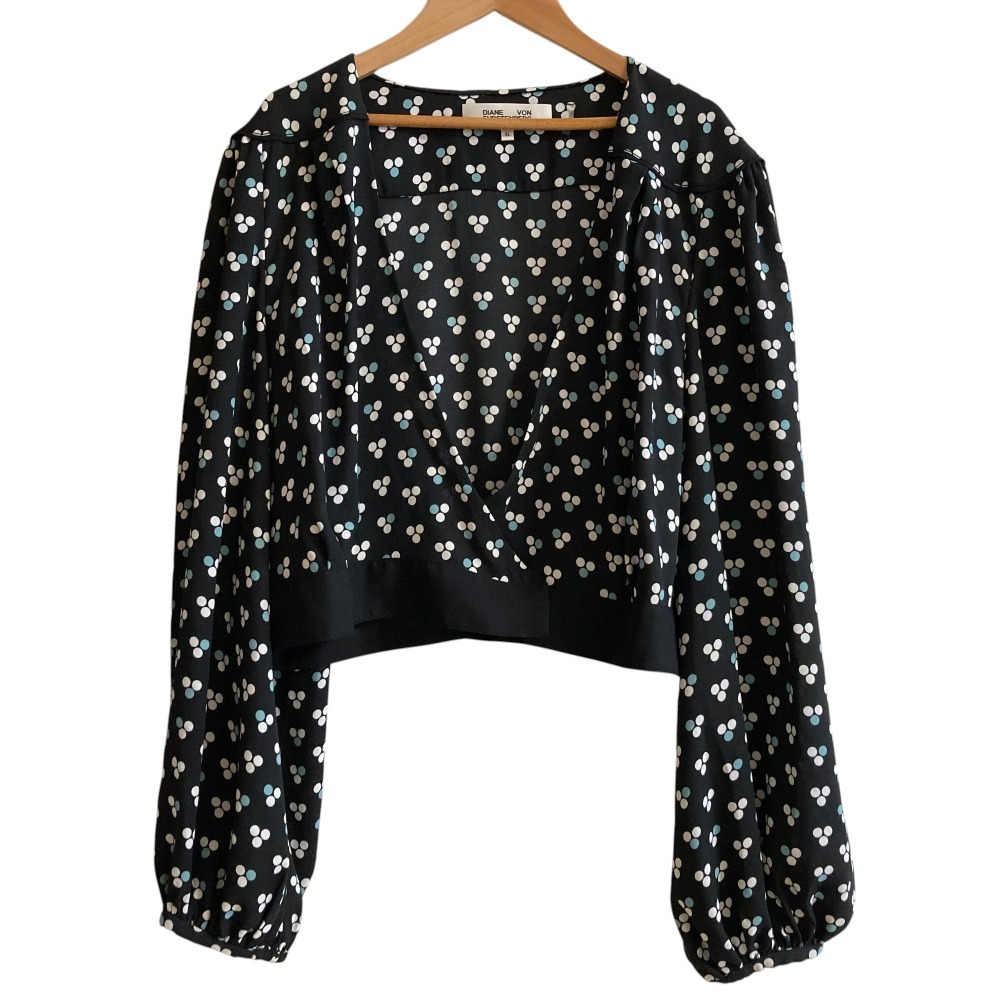 美品 Diane von Frstenberg ダイアンフォンファステンバーグ 総柄 長袖 クロップド カシュクール ブラウス シャツ サイズXL ブラック