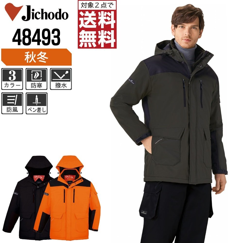 自重堂 秋冬 防寒 コート 脱着式フード付 撥水加工 優れた保温性 48493 色:ブラック サイズ:M ★ 対象2点 送料無料 ★