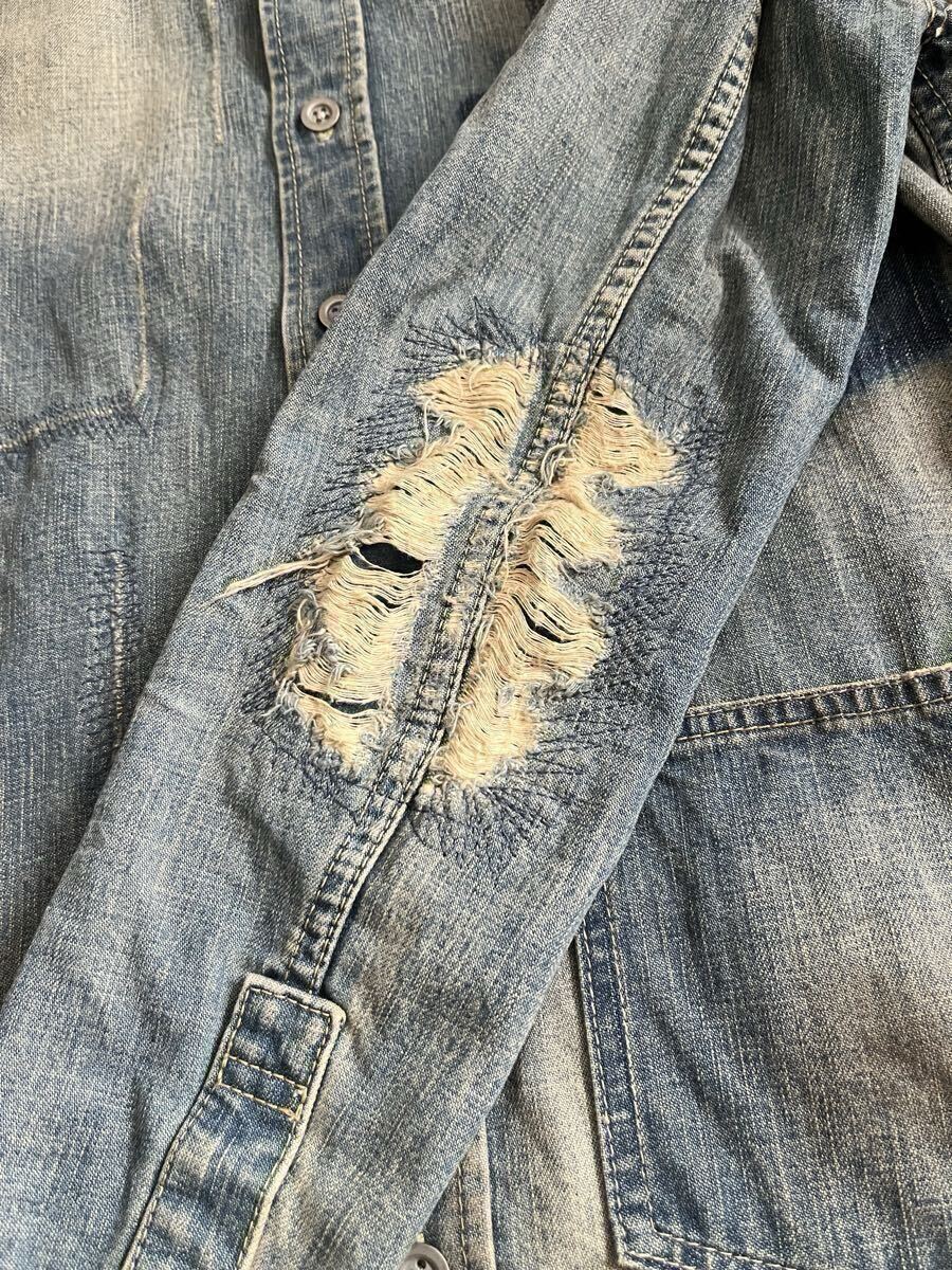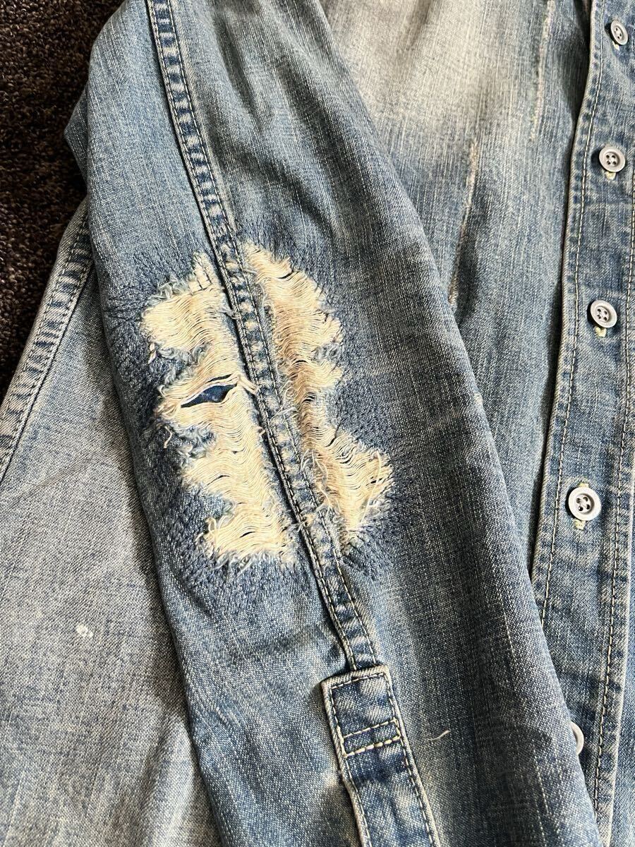 商品名 : ストレッチデニム10oz +カーフスウェードリメイクデニムシャツ