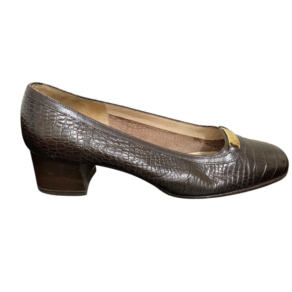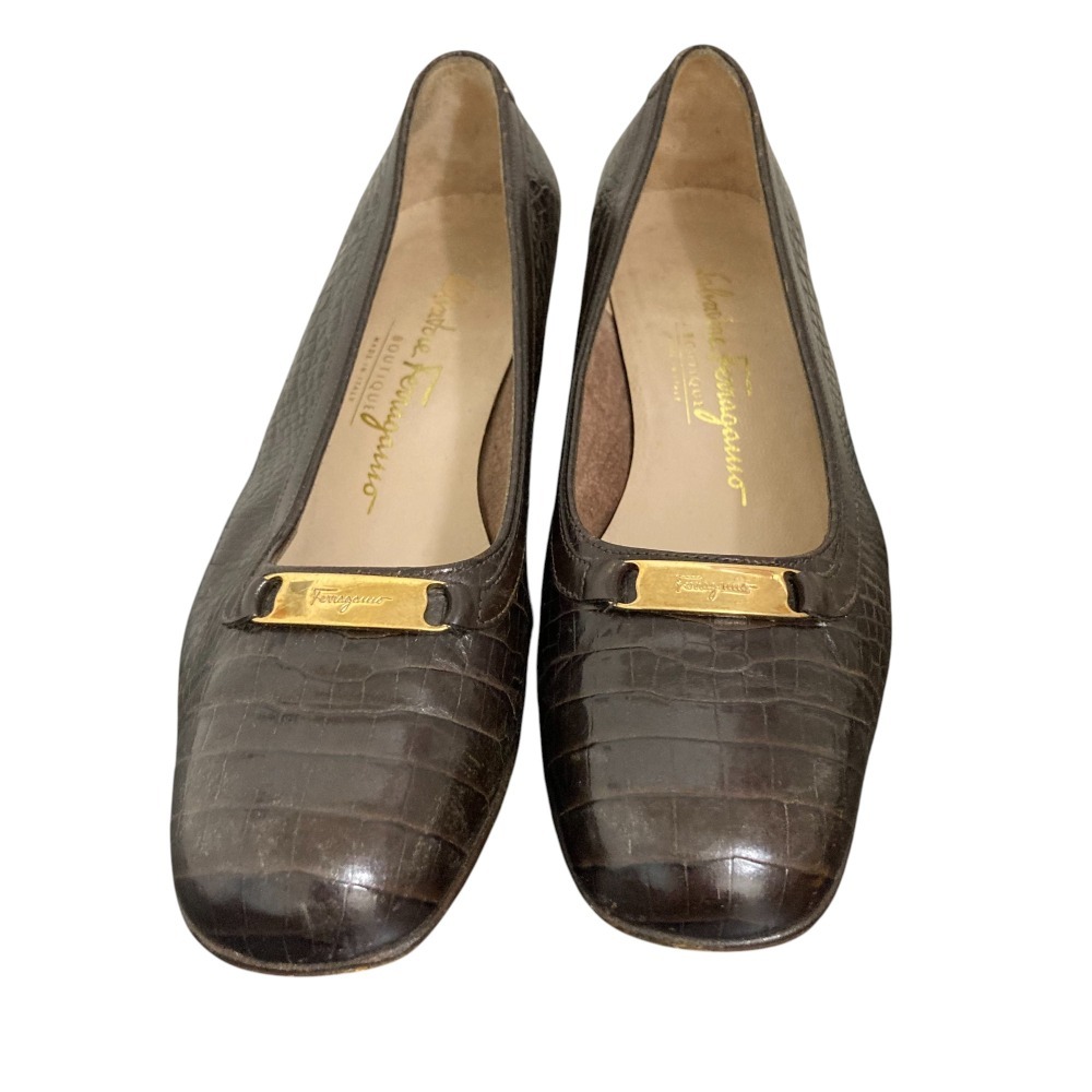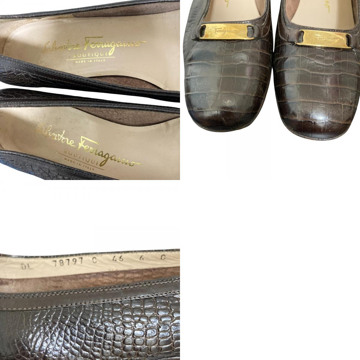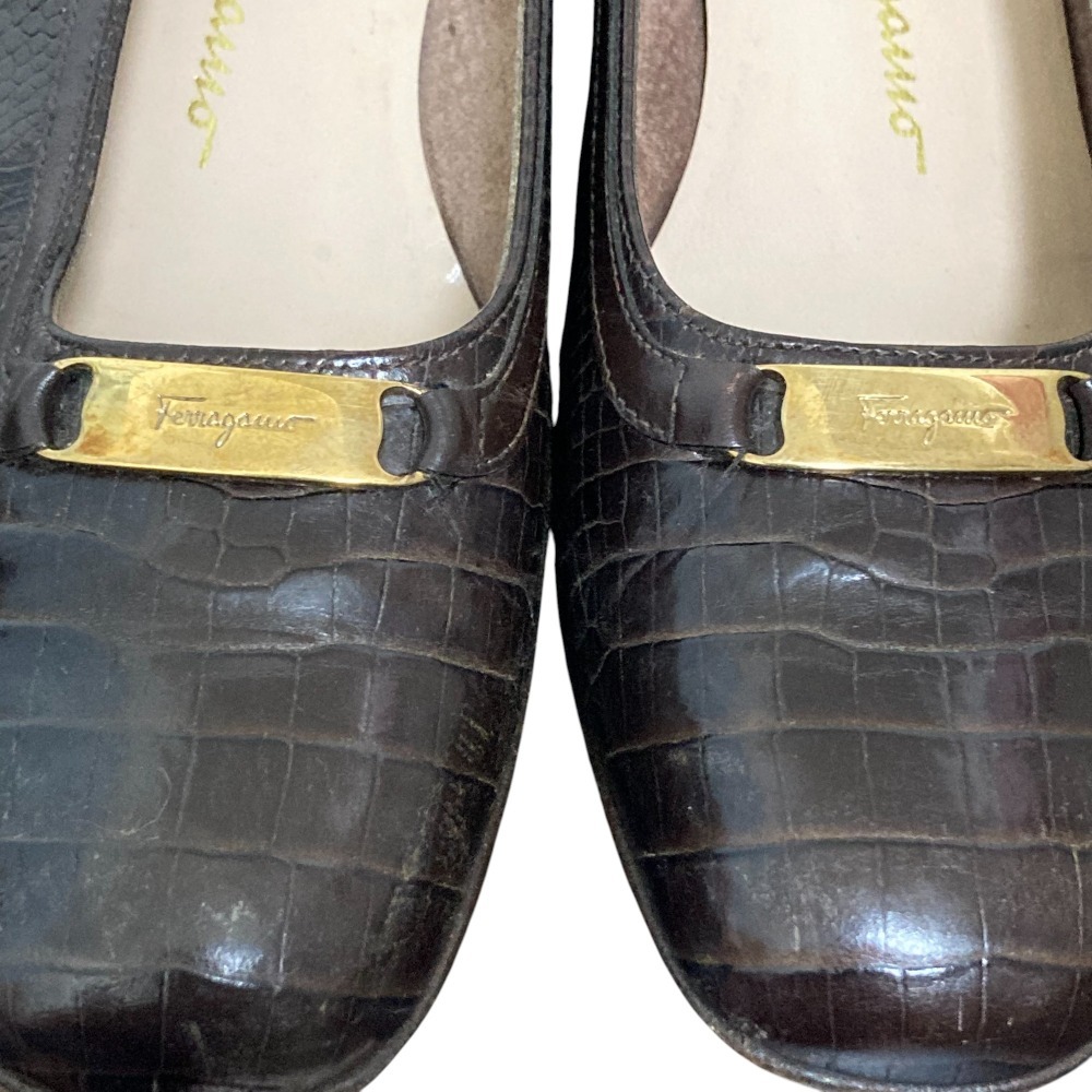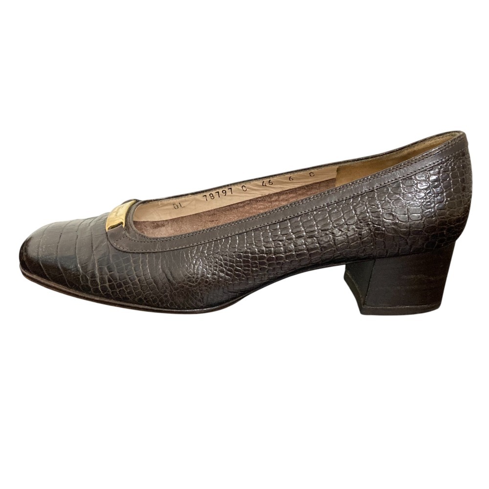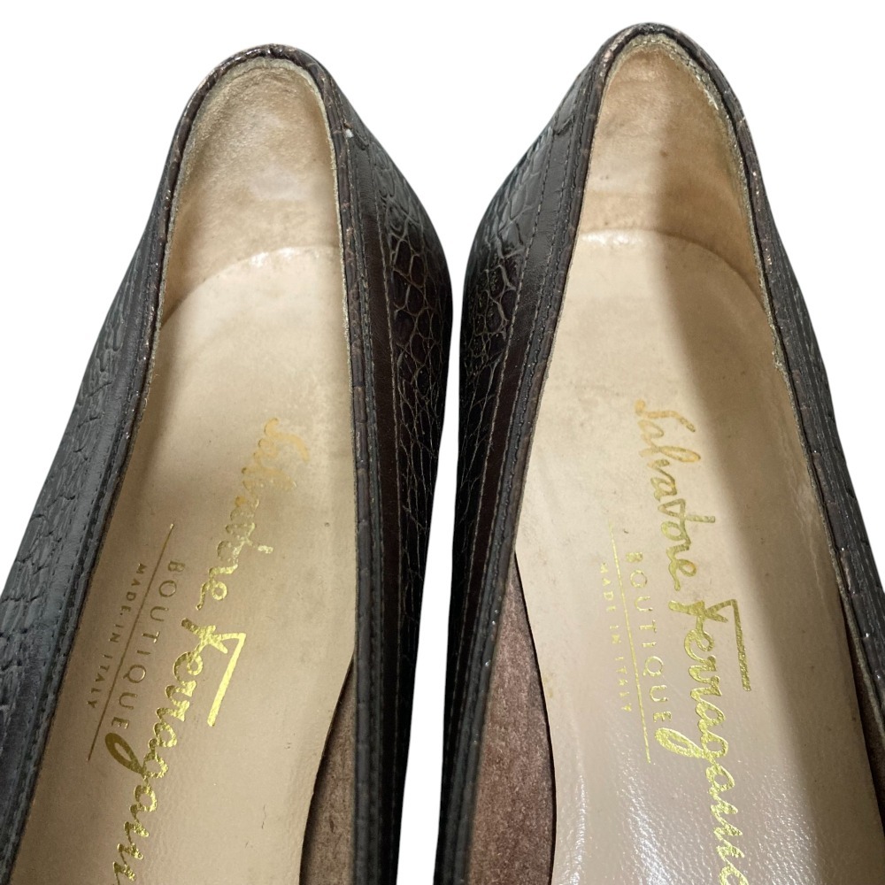 良品 Salvatore Ferragamo サルヴァトーレフェラガモ エンボス レザー パンプス サイズ6C 約23.5cm ブラウン