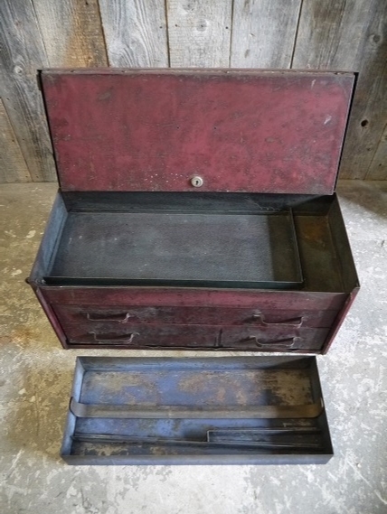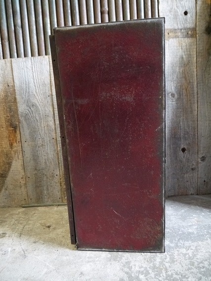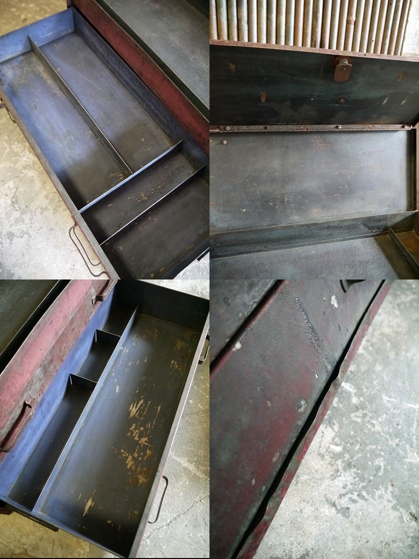 商品説明 岡山STAGE GOOD OLDより出品します。アメリカで買い付けましたビンテージのUSA TOOLキャビネットです。実際に使用されていたリアルなメタルの風合い&色褪せ&ペインティングされた渋いカラーにシンプルなデザインが抜群に雰囲気があります。フロントは2段の引き出し仕様で非常に重厚感があり存在感抜群ですので、ガレージやショップのディスプレイ什器におすすめです。鍵はありませんので、側面に後付けされた金具部分に南京錠等で施錠して下さい。年代の表記はありませんがデザインから1950年代前後頃になるかと思います。状態ですが画像にあるように、経年による使用感で全体的に金属劣化や錆、色褪せ、天板裏側の継ぎ目ネジ欠損交換(上蓋は完全に水平にはなりません)下側部分に凹歪みで一番下側のBOXのスライドがわずかに引っ掛かりますので多少出しにくい(強めに手前に引く感じです)ペイント塗装の剥がれ、OIL汚れや多少の凹みやサビなどはありますが、実用にも問題ない雰囲気のある状態です。あくまでビンテージになりますのでご理解いただける方のご購入をよろしくお願い致します。 サイズ 高さは約27cm、横幅約60cm、奥行き最大約27cmになります。 発送方法 保障の利く佐川急便の元払い160cmサイズ料金で行います。*重量が20kgを超えますのでこちらのサイズでの発送になります。 コメント 店頭にも出しています。タッチの差で売れた場合はご了承下さい。■落札後の連絡及びご質問の返答は基本的に午前10時~午後6時までとさせて頂きます。毎週水、木曜日、年末年始や時間外でのご連絡は休み明け及び翌日のご連絡となりますので予めご了承下さい。 STAGEホームページ https://www.good-oldstage.com/ |