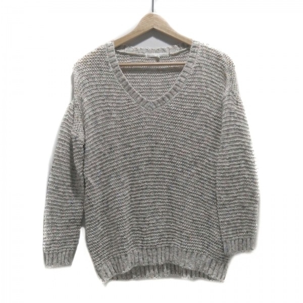 アナイ ANAYI 長袖セーター/ニット サイズ38 M - アイボリー×ライトブルー×マルチ レディース Vネック トップス