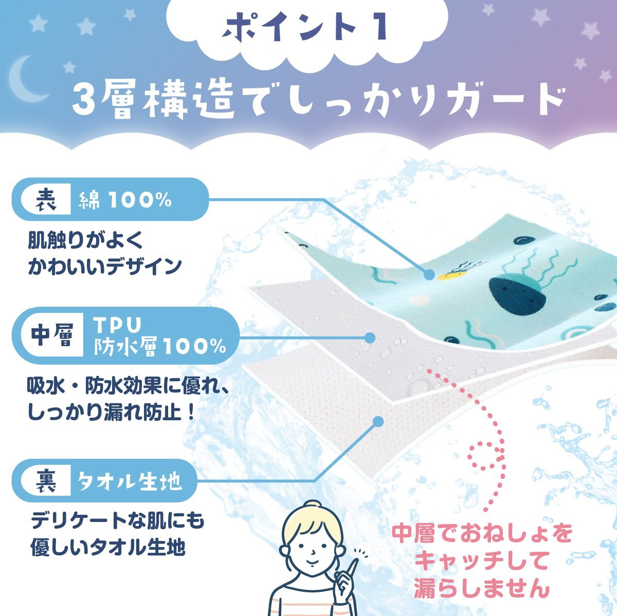 また、防水生地(TPU)を2層目に入れており、しっかりおしっこ漏れを防ぎます。