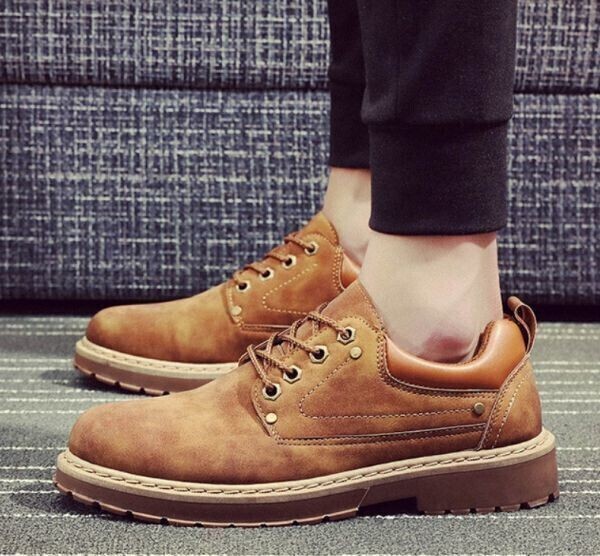 靴 【28cm】【 s111 茶 】 メンズ PUレザー オックスフォード シューズ ブーツ レースアップ ショートブーツ スニーカー カジュアル
