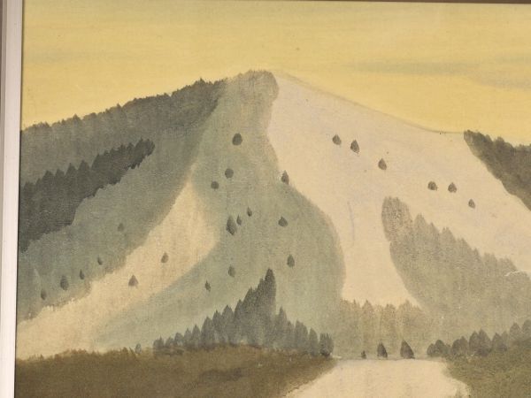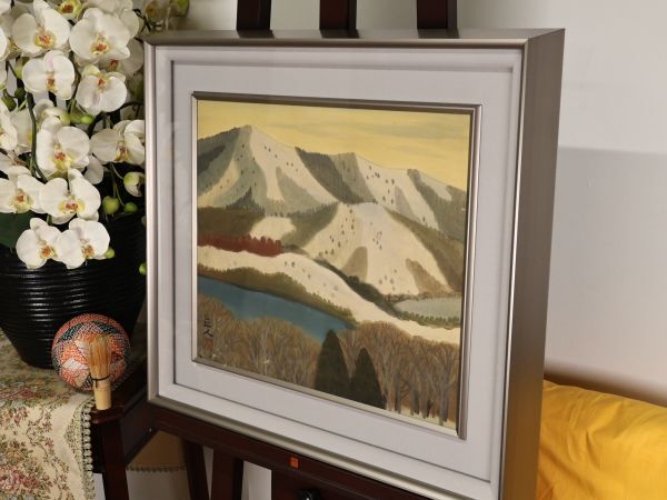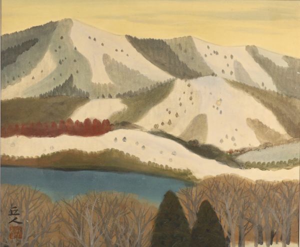 【真作】 山本丘人 「 冬山 」 8号 日本画 共シール 黄色袋 タトウ  BK148