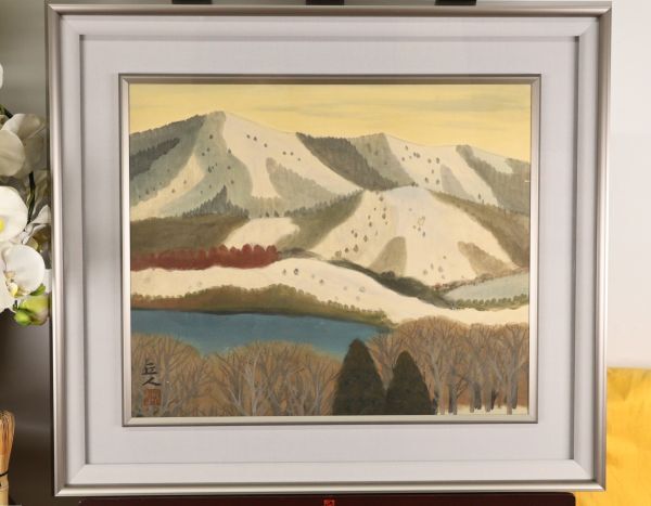 『 【真筆】 山本丘人 「 冬山 」 8号 日本画 共シール 黄色袋 タトウ  BK148  』の出品です。