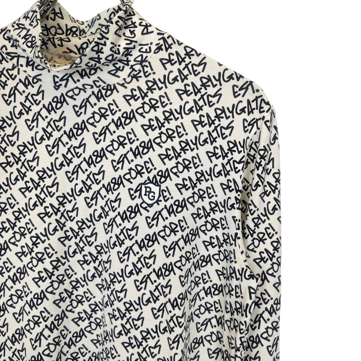 PEARLY GATES パーリーゲイツ ゴルフ 総柄 ロゴ モックネック 長袖 Tシャツ 053-0266105 5 ホワイト メンズ