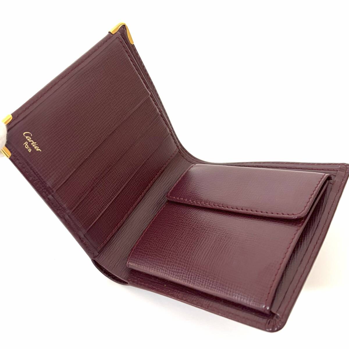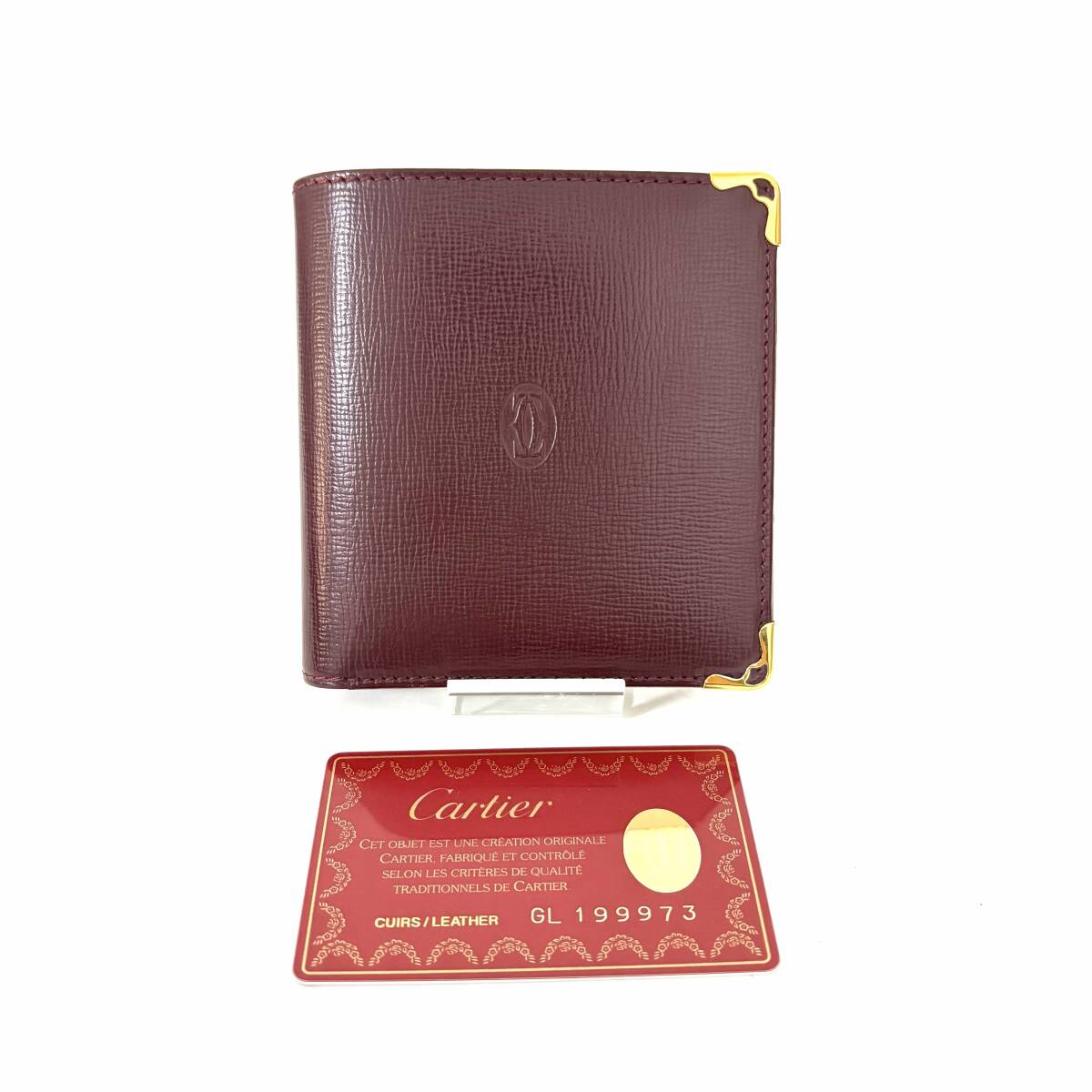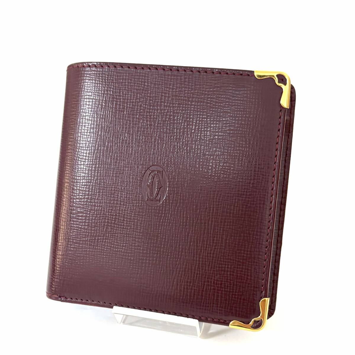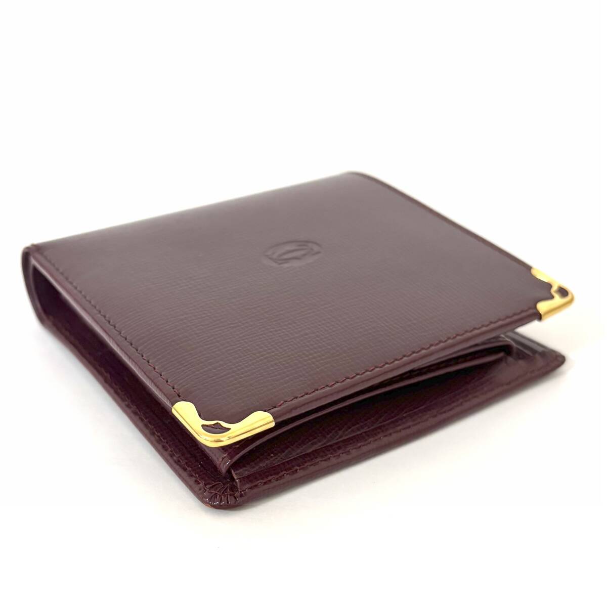 SD0728 美品! 格安! Cartier カルティエ マストライン 二つ折り財布 コンパクトウォレット レザー ボルドー