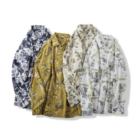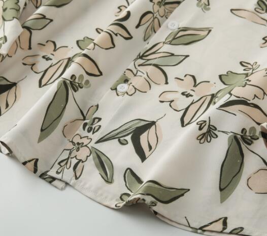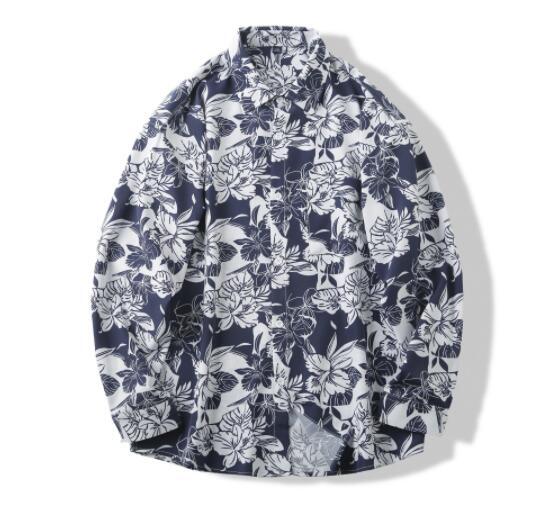 人気品L ネイビー 新品 長袖シャツ アロハ リゾート風 ボタニカル柄 ゆったり 涼感 快適 軽やか 通気 夏秋 メンズ カジュアル トップス