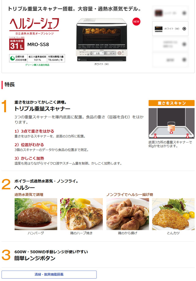 | メーカー・型式 | 日立 / ヘルシーシェフ MRO-SS8(W) | |