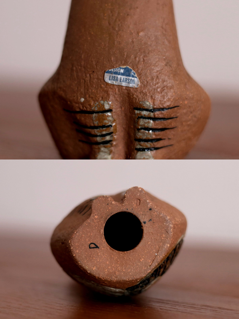 | 商品説明 | 品名:Lilla Zoo Katt 小さな動物園 猫 デザイン:Lisa Larson リサ・ラーソン メーカー:Gustavsberg グスタフスベリ 製造年代:1956年-1978年 サイズ:W6.8cm D5.1cm H12.0cm コンディション:ワレ、カケ、ヒビ、直しなく、とても素晴らしいコンディションです。 Lilla Zooシリーズの猫です。立ち姿が凛々しいですね。Gustavsbergのステッカーが貼られたままの状態です(画像10上)。*ステッカーは配送中に剥がれてしまう場合もありますので予めご了承頂きますようお願い致します。 |