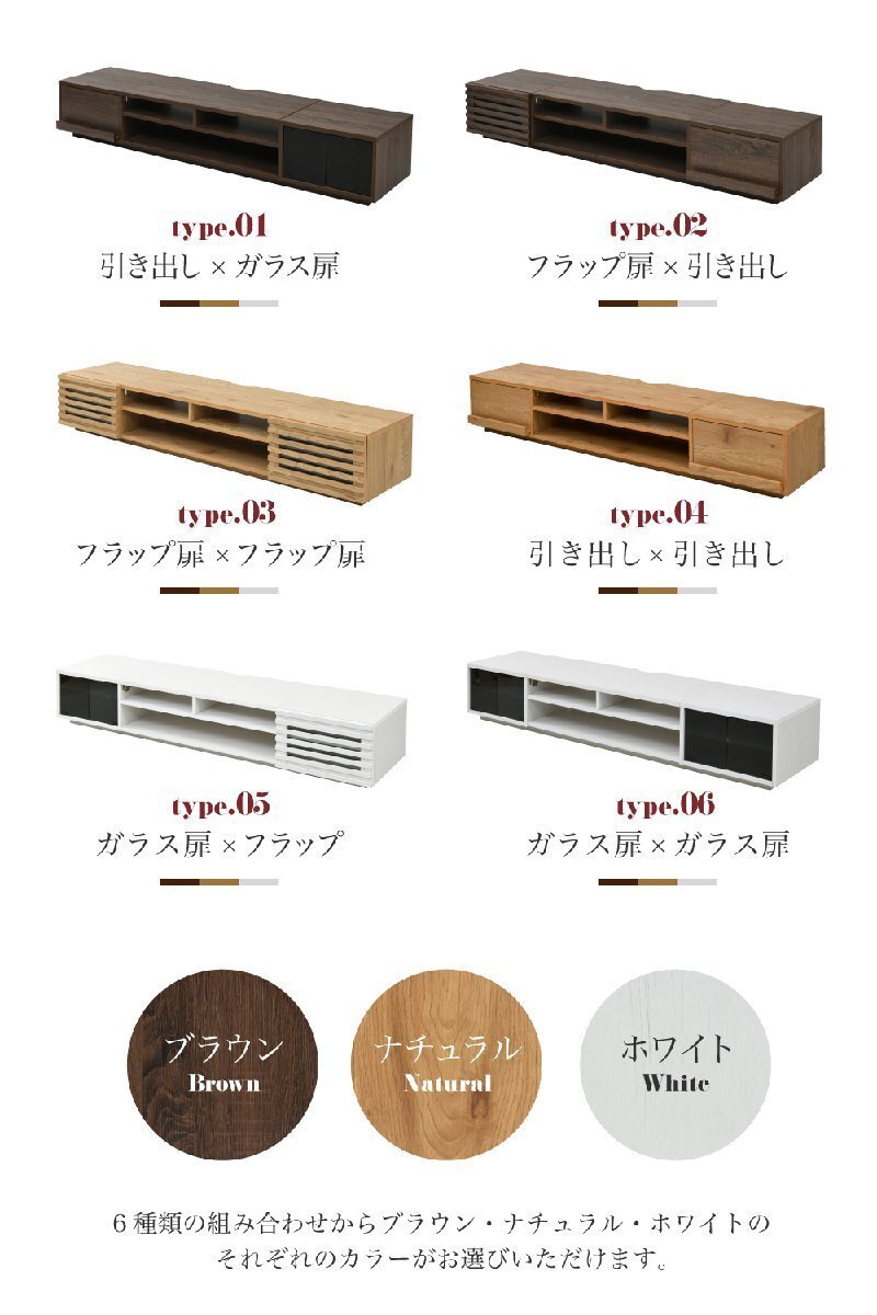 | ■商品説明 左右の収納は引き出し、フラップ扉、ガラス扉の3種類からお好きな組み合わせを選んでいただけます。大型テレビを置いても雑貨をディスプレイしても使える幅180cmのワイドデザイン。お部屋の圧迫感を軽減するロータイプ設計です。 |