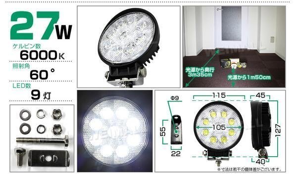 | 色温度: 6000K 動作電圧: 10V~30V 形状: 丸型 LED: 3w×9pcs 防水等級: IP67 |