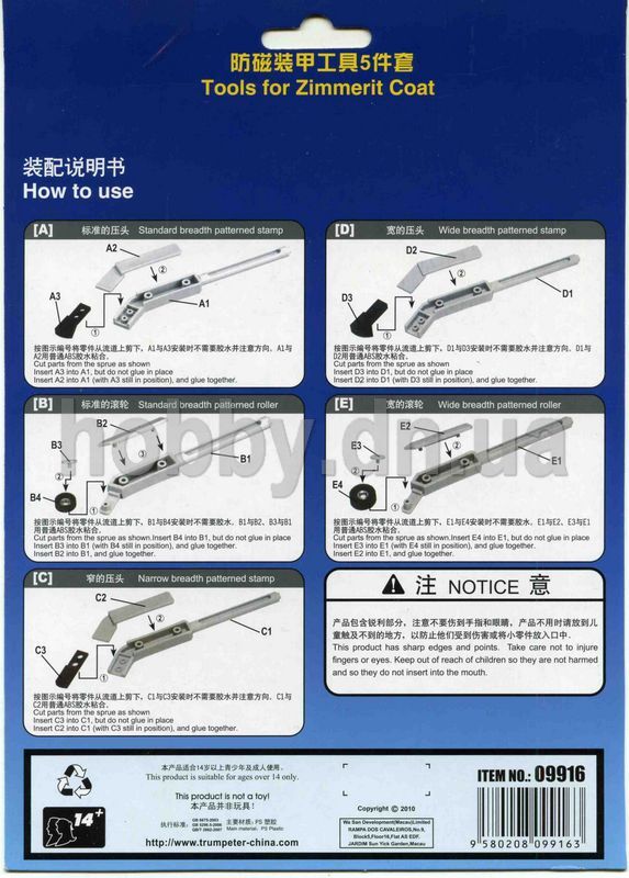 ◆◇トランペッター【09916】ツィンメリットコーティングローラー & スタンプ 5本セット◇◆