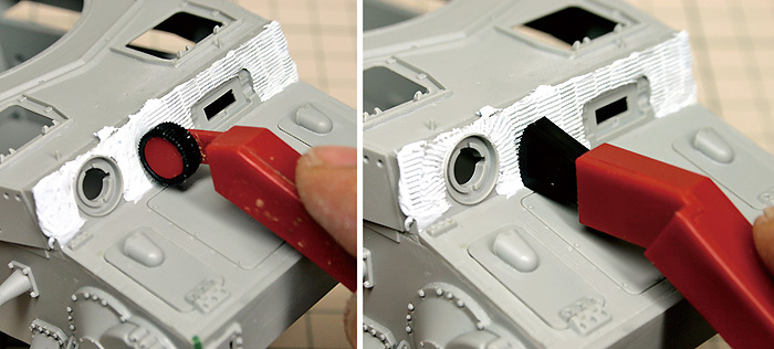 (1/35スケールで見たときの標準的なサイズ、車体の入り隅部分や、予備履帯ラックまわりなど、ローラーのかけられない場所に押しつけて使用)