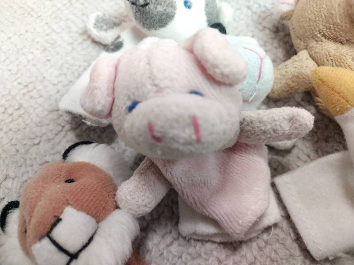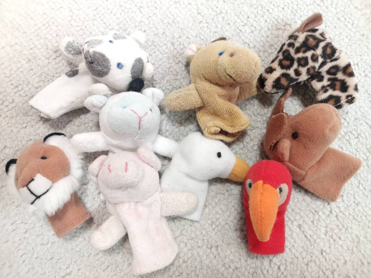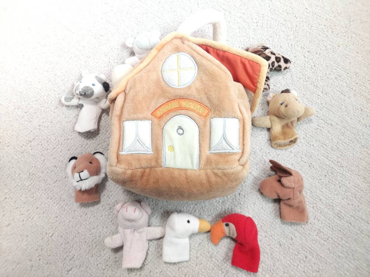 ☆USED☆アニマルハウス おうち付き 指人形 動物 フィンガーパペット ライオン・きりん・牛・豚・インコ・トナカイ・ひつじ・あひる・ロバ?
