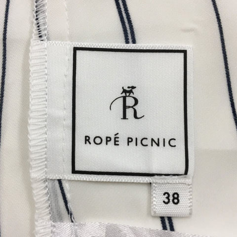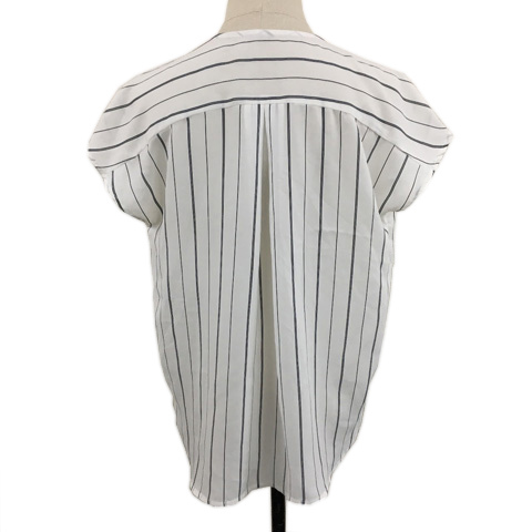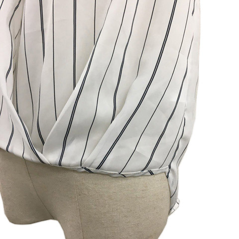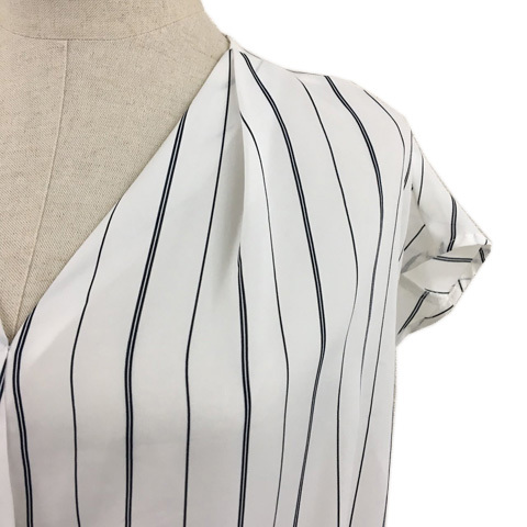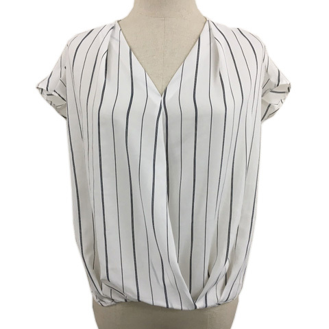 ロペピクニック シャツ ブラウス Vネック プルオーバー カシュクール ストライプ フレンチスリーブ 半袖 38 白 黒 ホワイト ブラック
