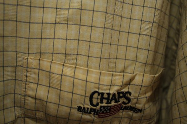 4025**L:ラルフ、薄黄系、長袖ボタンダウンシャツ、少し薄地、良品