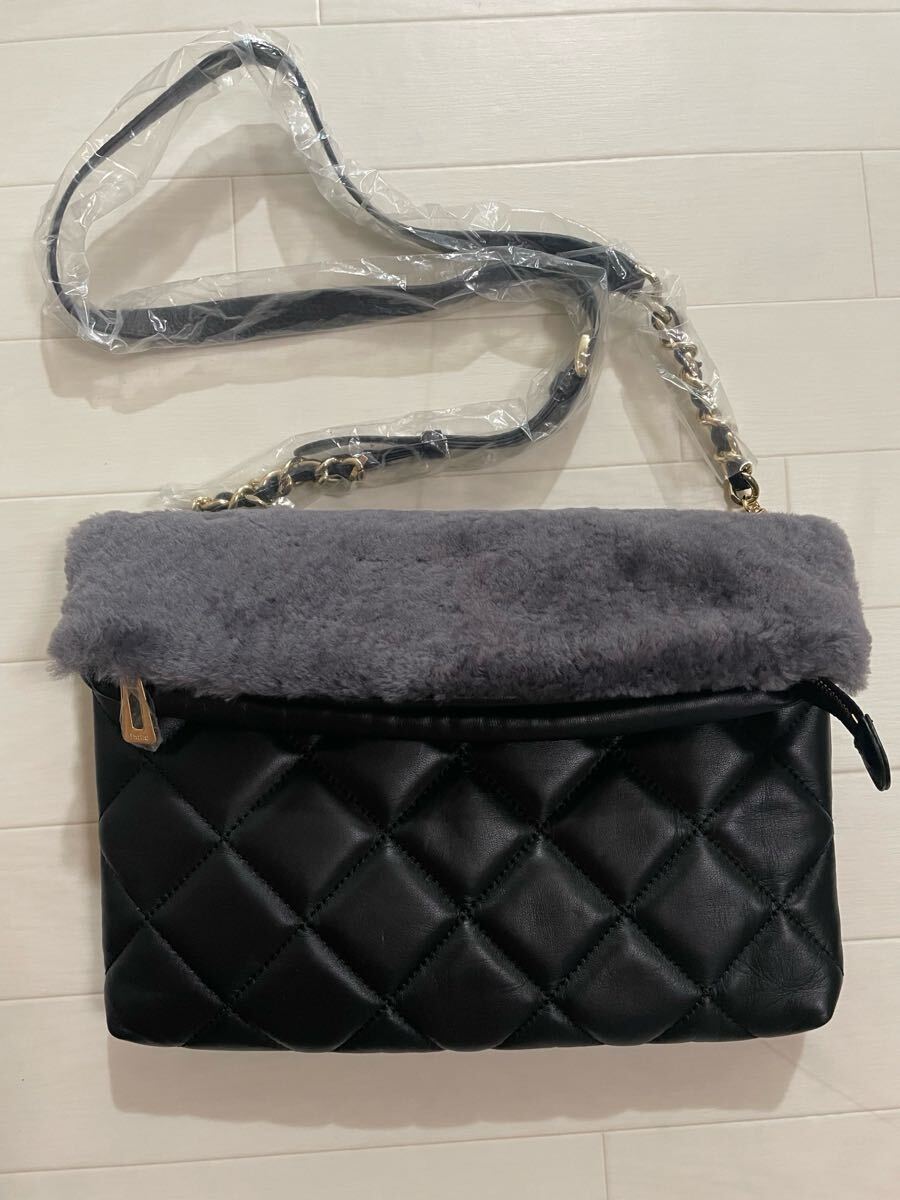 AMOUR INFINI アムーアンフィニ キルティング ファー ショルダーバッグ クラッチバッグ ブラック グレー 商品番号YS1492