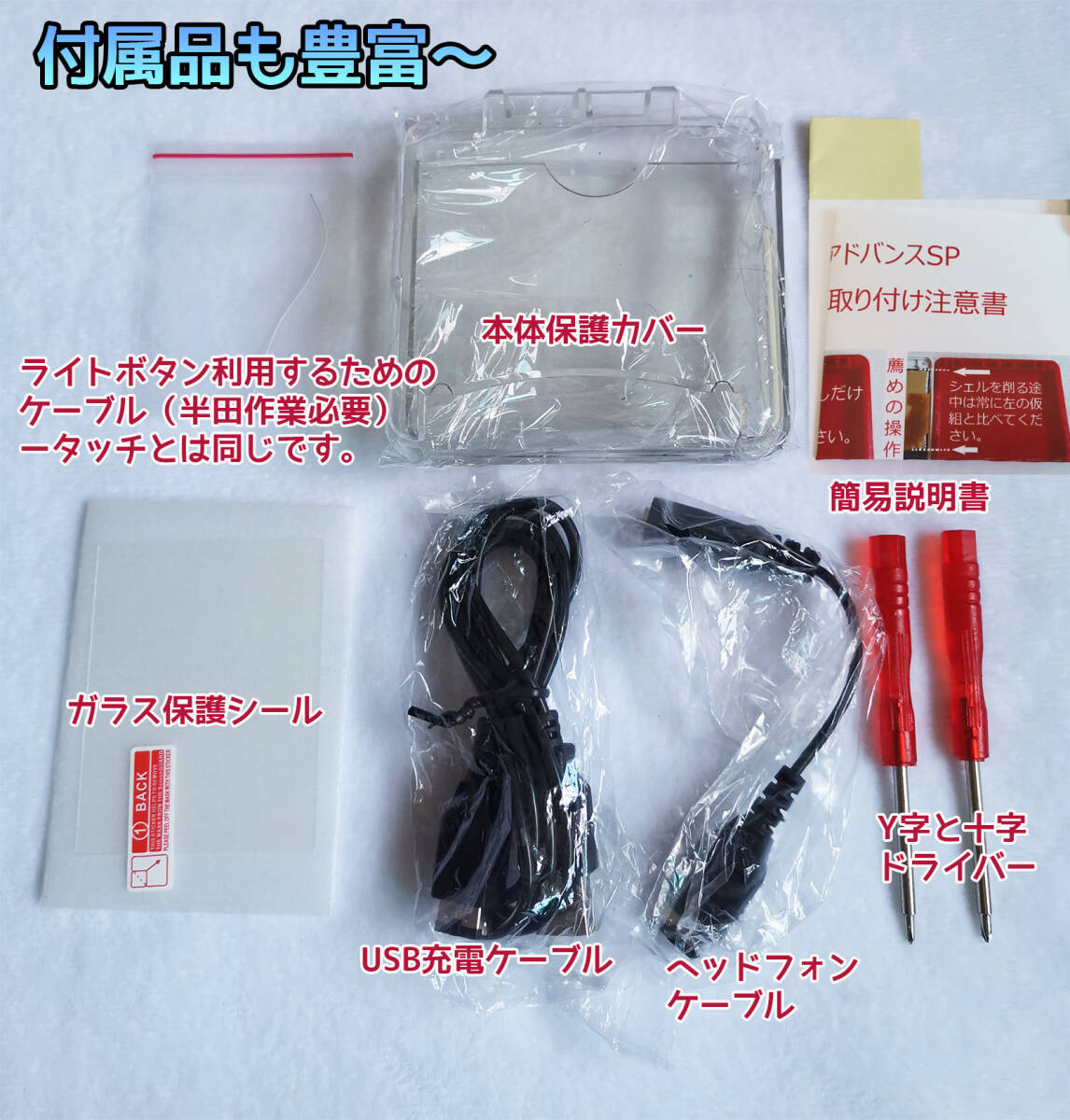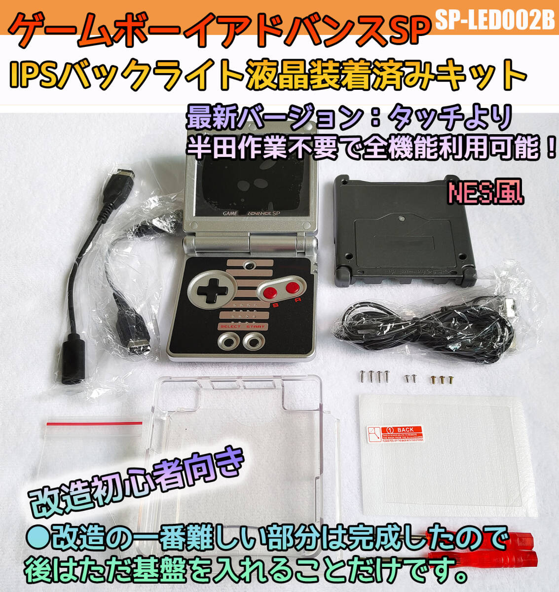 ゲームボーイアドバンスSP 初心者向き IPSバックライト液晶装着済み 改造セット 全機能利用可能 おまけ付き (SP-LED002B)