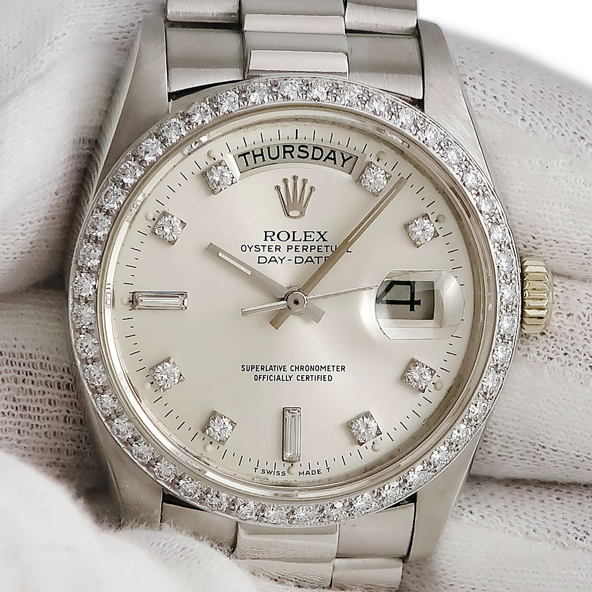 ロレックス ROLEX デイデイト 18046A OH済 67番台 Pt950無垢 純正ダイヤ トリチウム シルバー プラチナ メンズ 腕時計 自動巻き シルバー 中古 店頭受取不可 | |