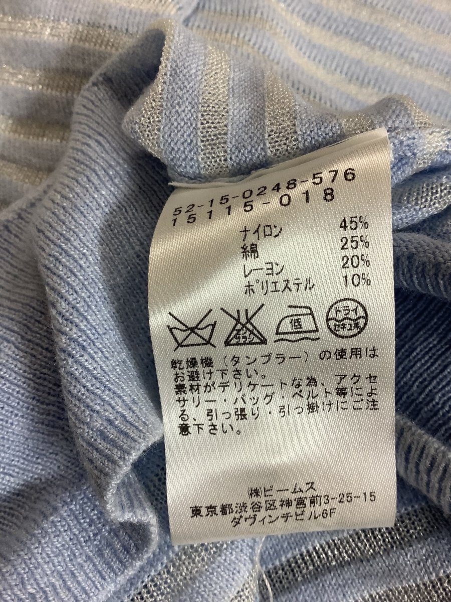 | 管理番号:10^137225 ビームス ライツ 水色シアーボーダー カーディガン 表示サイズ:なし 実寸(参考)