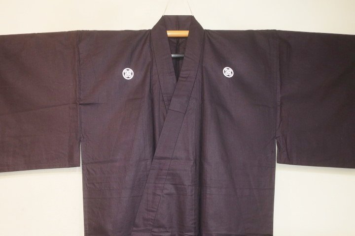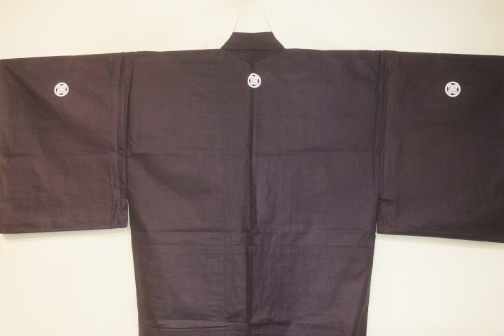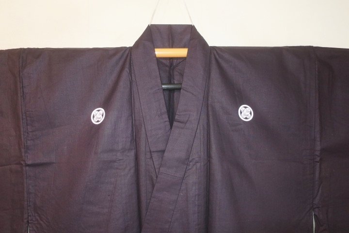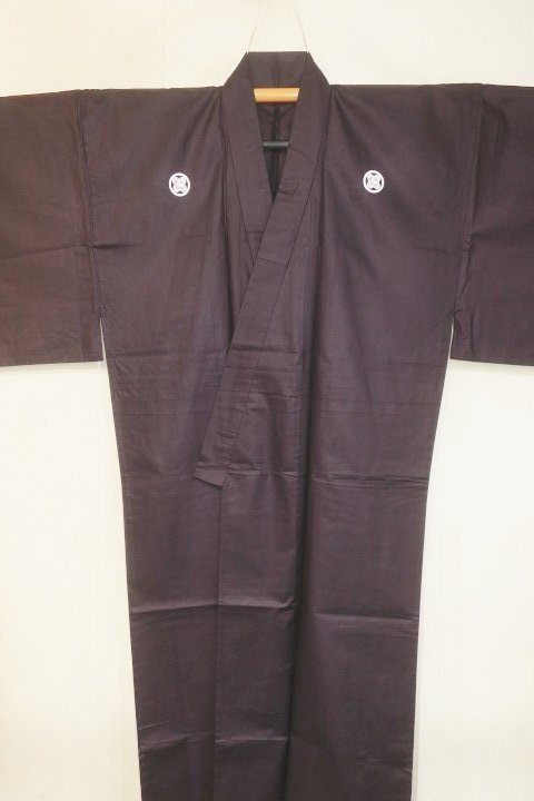 こちらのお品は、遠州織の綿上布のミシン手縫い併用の新品の着物のサンプルに紋を入れました。滅紫(けしむらさき)色、蜜色の無地、画像の紋は丸に違い鷹の羽の五つで白です。夏の紋付に如何でしょうか。汗をかいたらこのまま家庭で洗えます。この商品は紋入れ代金を含みます。落札時に紋の指定をお願いします。紋の色は白以外も承れます。納期は1週間から10日頂きます。