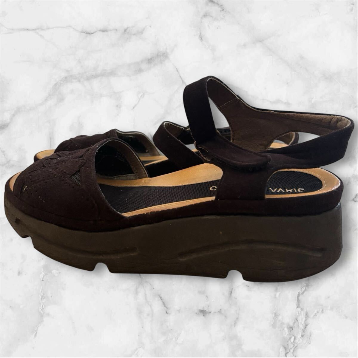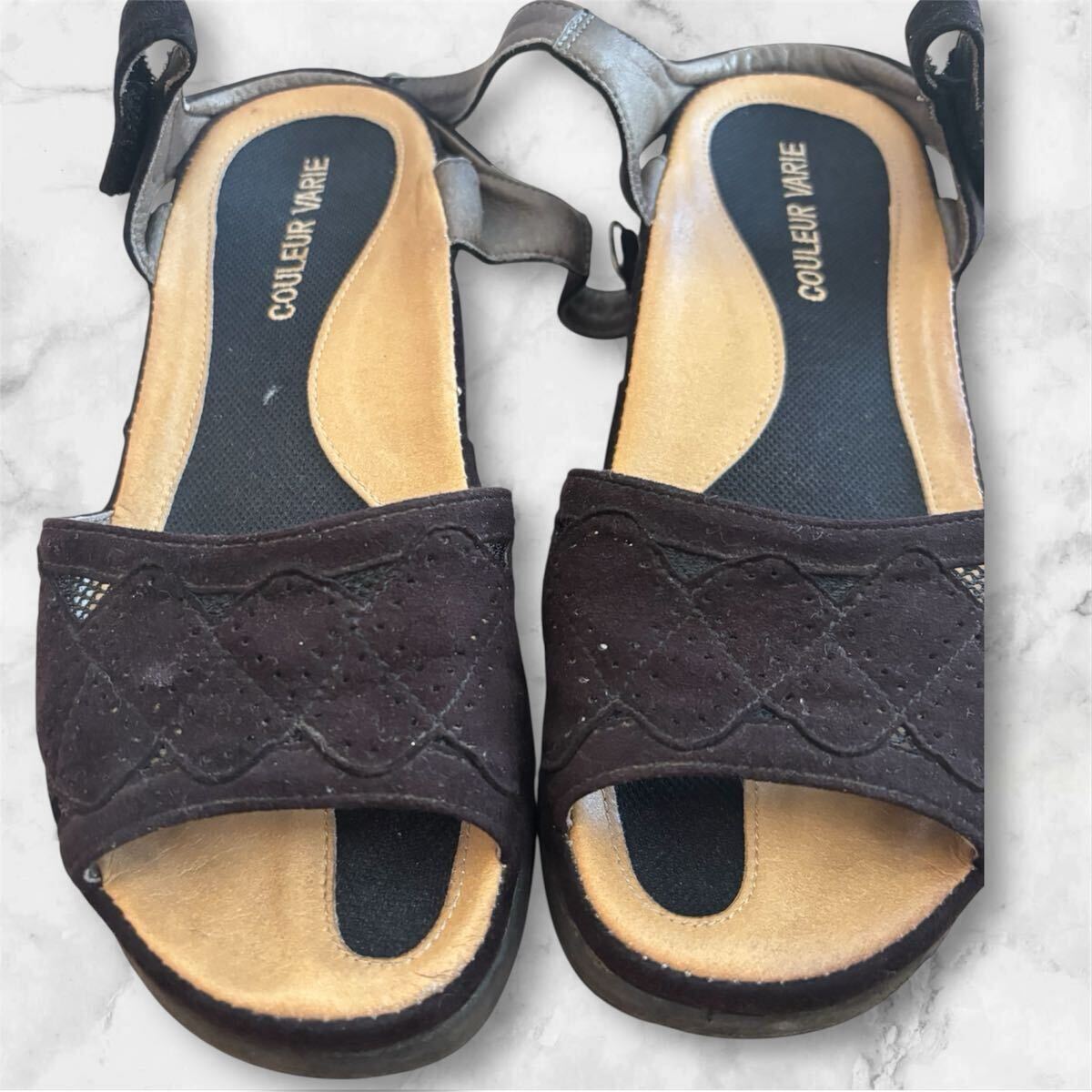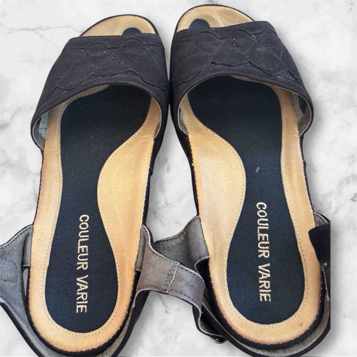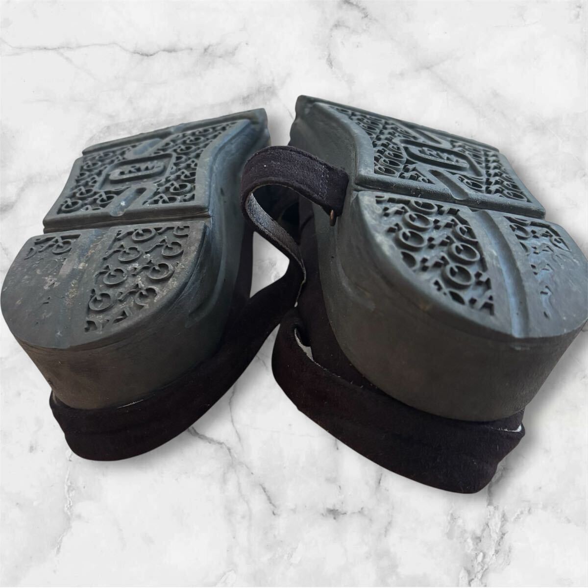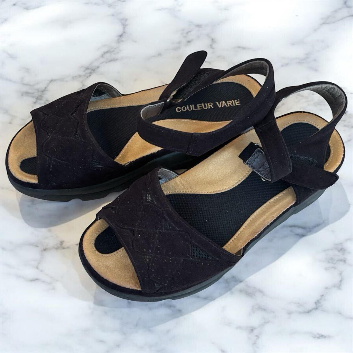 スエード調のブラックストラップサンダルです。