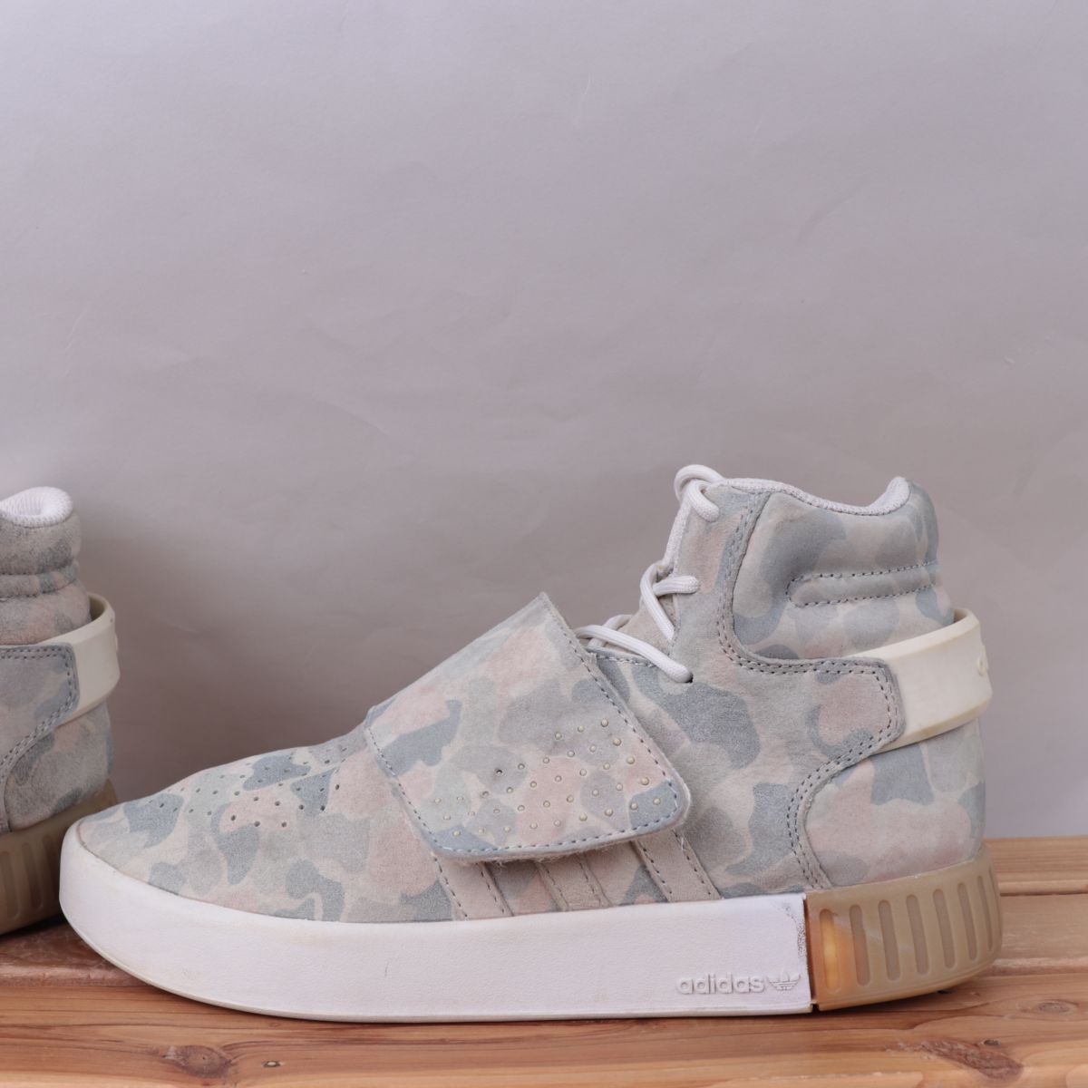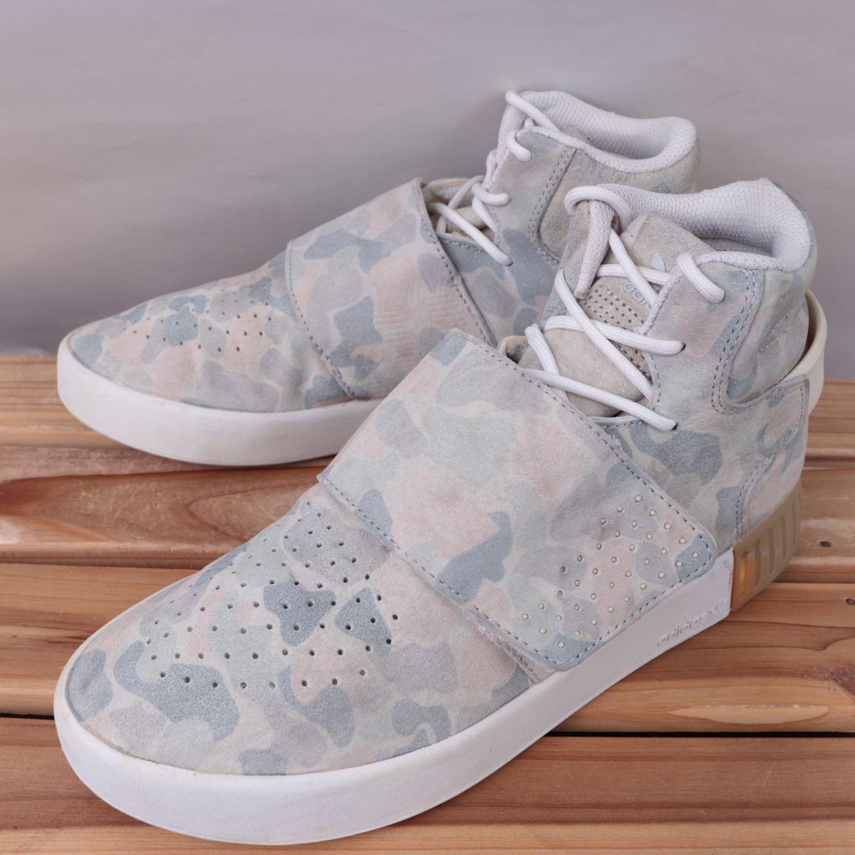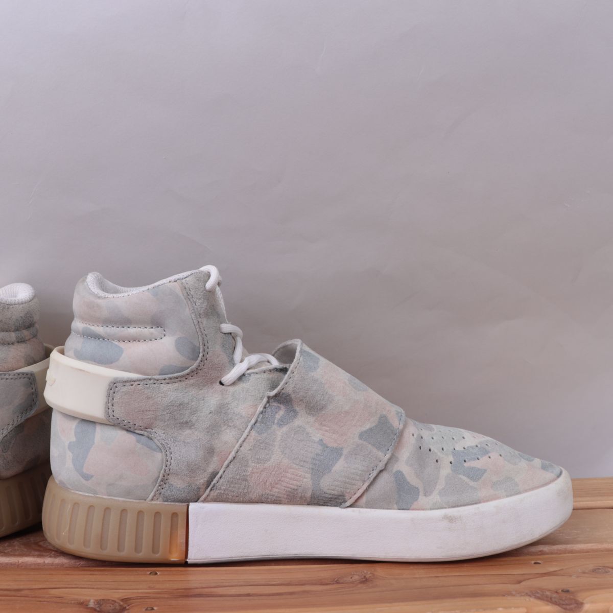 z1785 アディダス チューブラー US7 25.0cm/灰 ライトグレー カモフラージュ柄 白 adidas Tubular メンズ ユニセックス スニーカー 中古